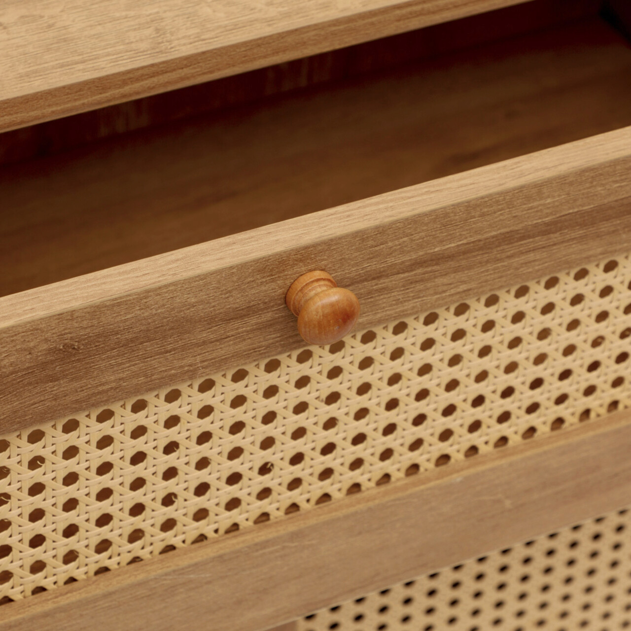 Comoda NOTTO este o piesa de mobilier versatila, perfecta pentru sufragerie, dormitor, hol sau living. Datorita designului sau atemporal, se integreaza armonios in interioare inspirate din stilul scandinav, boho, eclectic sau vintage.