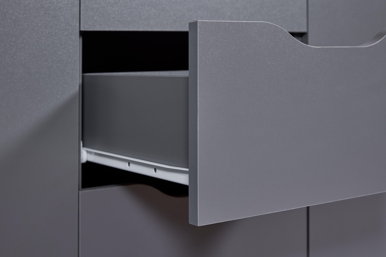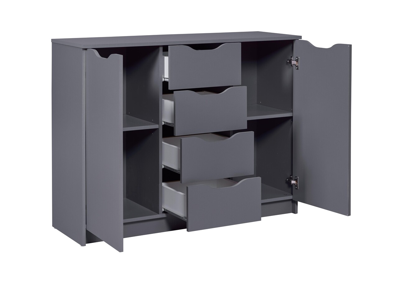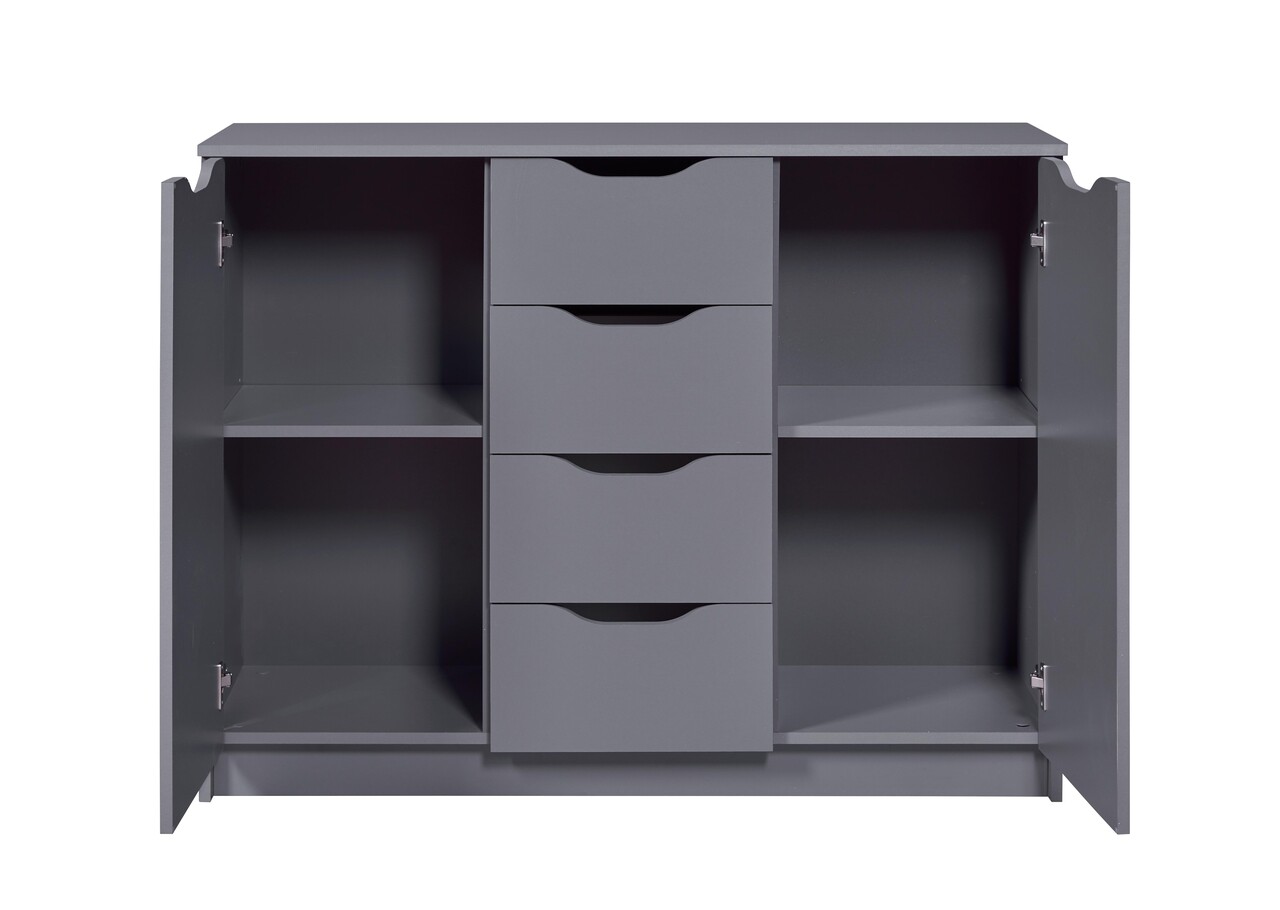 Comoda Silenzia 2T4S, Inter Link, 122x40x92 cm, lemn, gri grafit