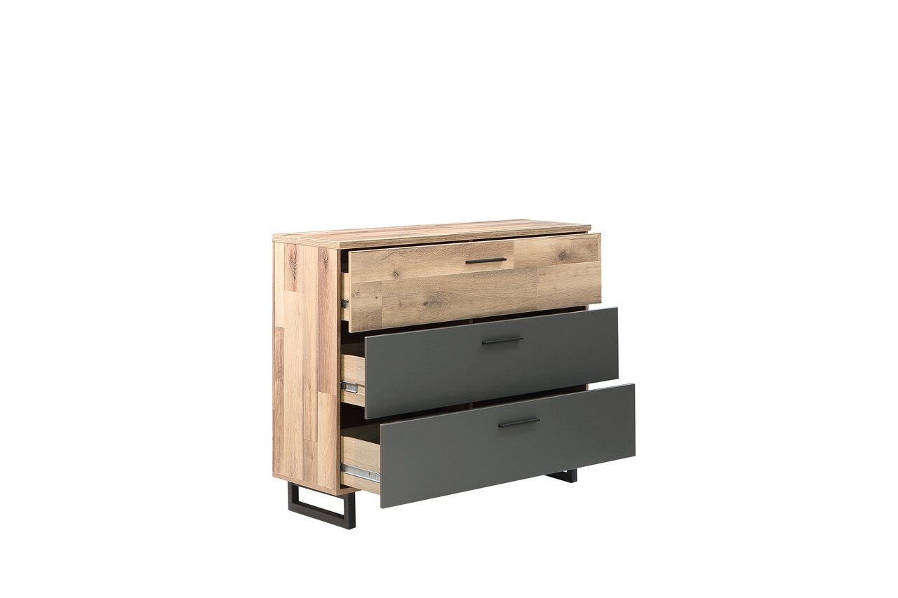 Comoda Someren, Bedora, 120.1x41.3x85.8 cm, PAL/metal, stejar/gri