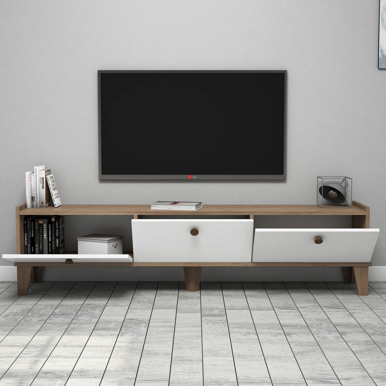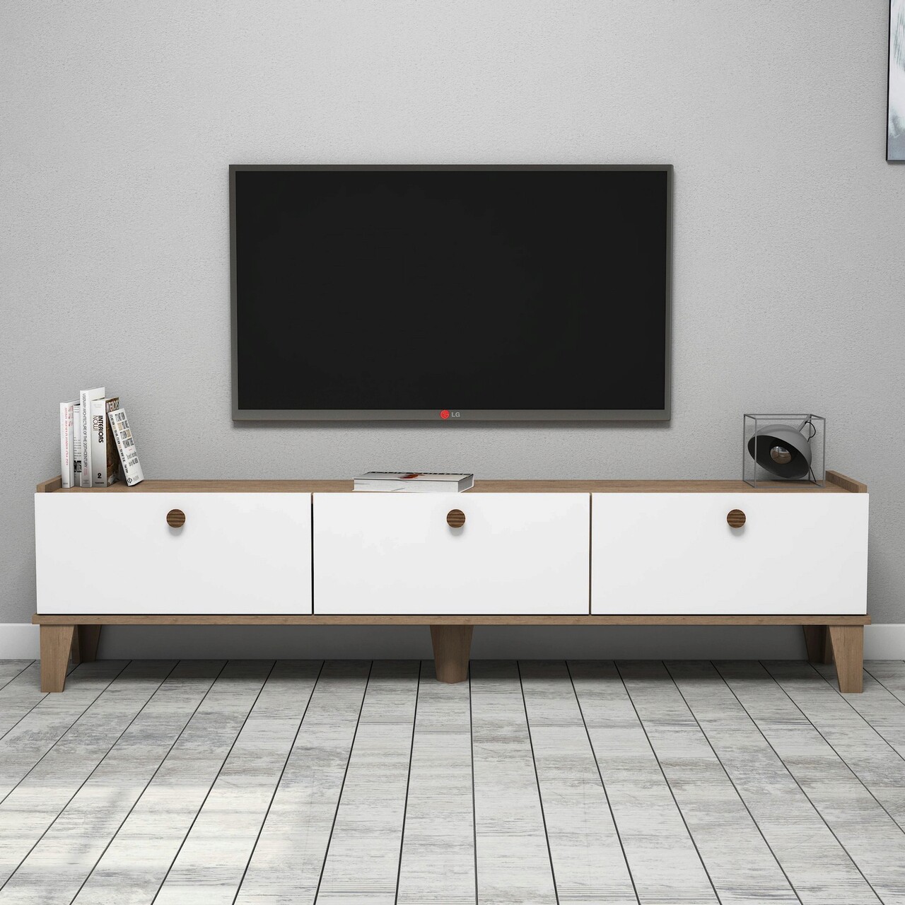 Comoda TV, Almaren, Sumer E3620, 178x44 cm, PAL, Stejar / Alb