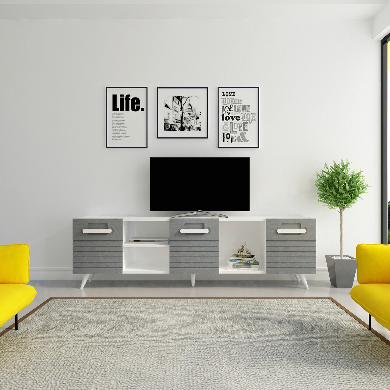 • Comoda TV, Avva Home, Wing, 180x53x31.3 cm, Antracit/Alb