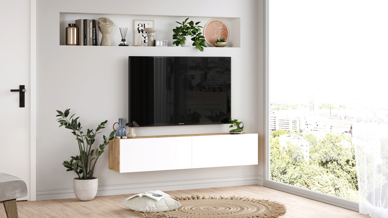 Comoda TV Bedora, 140x31.6x29.6 cm, PAL, alb/natur