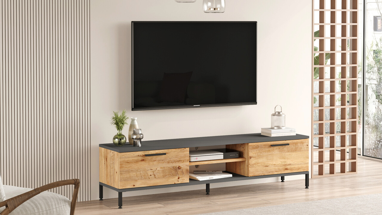 Comoda TV Bedora, 160x35x39.1 cm, PAL, natur/antracit
