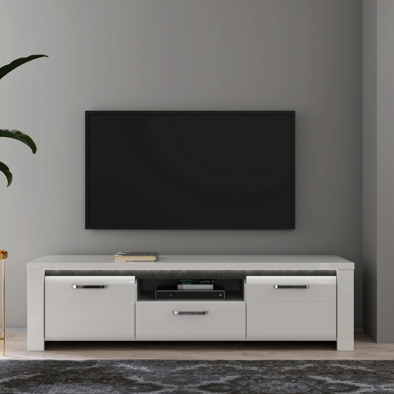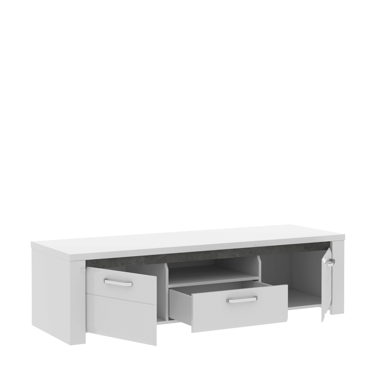 Comoda TV Bernisse, Bedora, 161.1x52.7x43.9 cm, MDF/PAL/metal, alb lucios