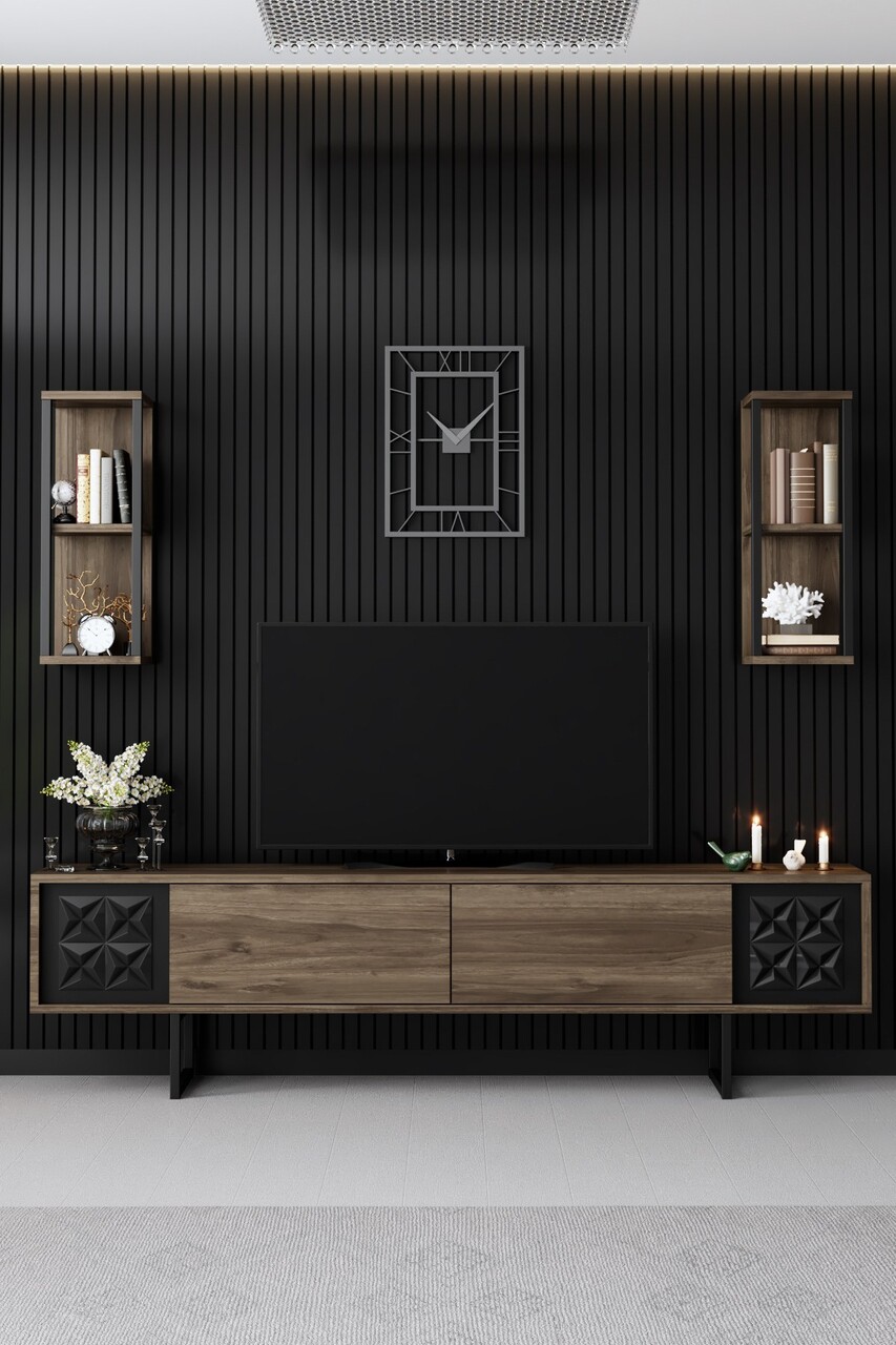 Comoda TV, Bexley, Black Line, 180x30x48 cm, PAL, Nuc / Negru