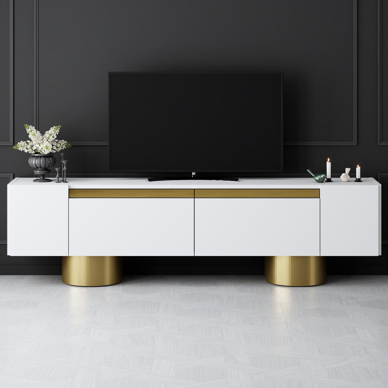 Comoda TV, Bexley, Bohem, 180x50x30 cm, PAL, Alb/Auriu