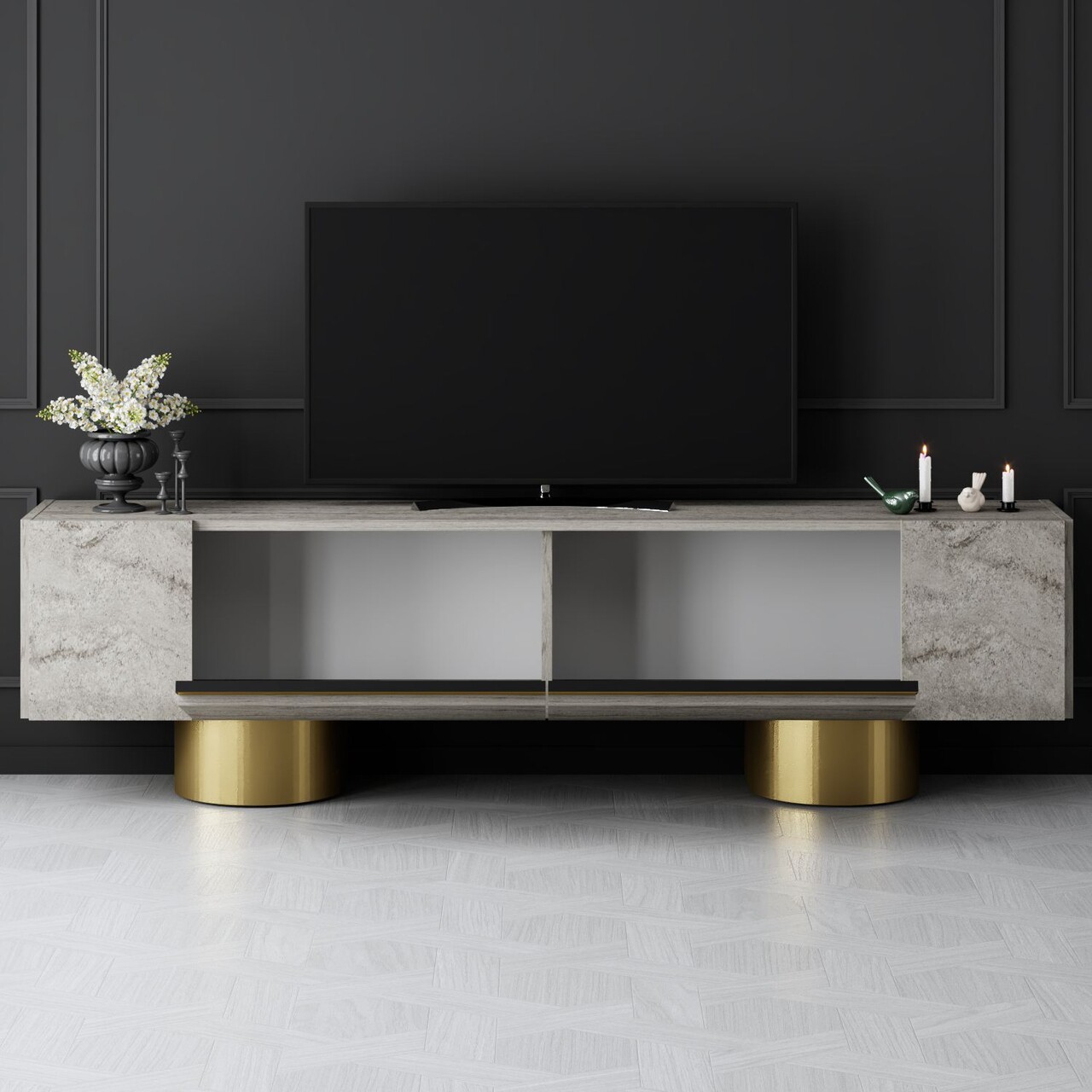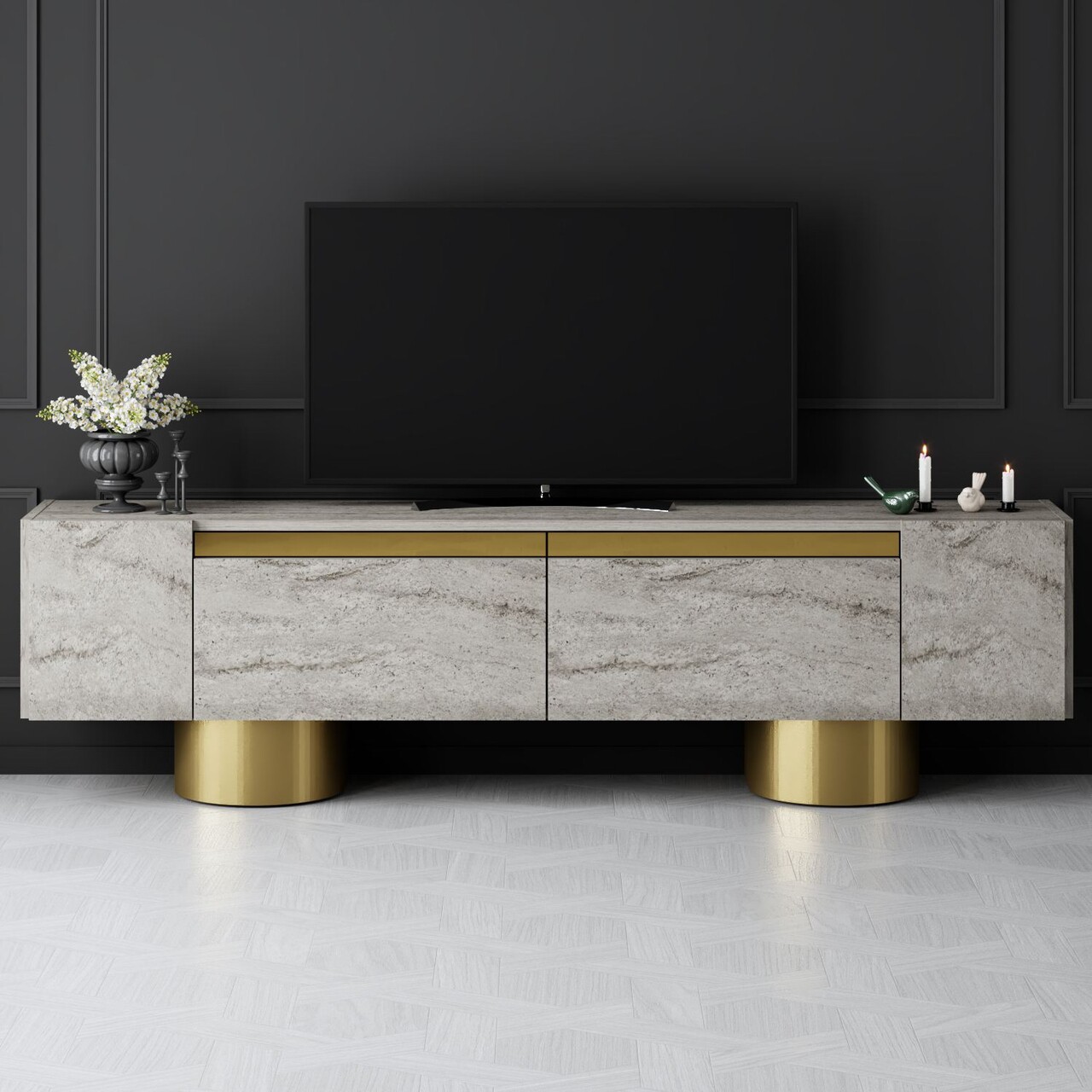 Comoda TV, Bexley, Bohem, 180x50x30 cm, PAL, Travertin / Auriu