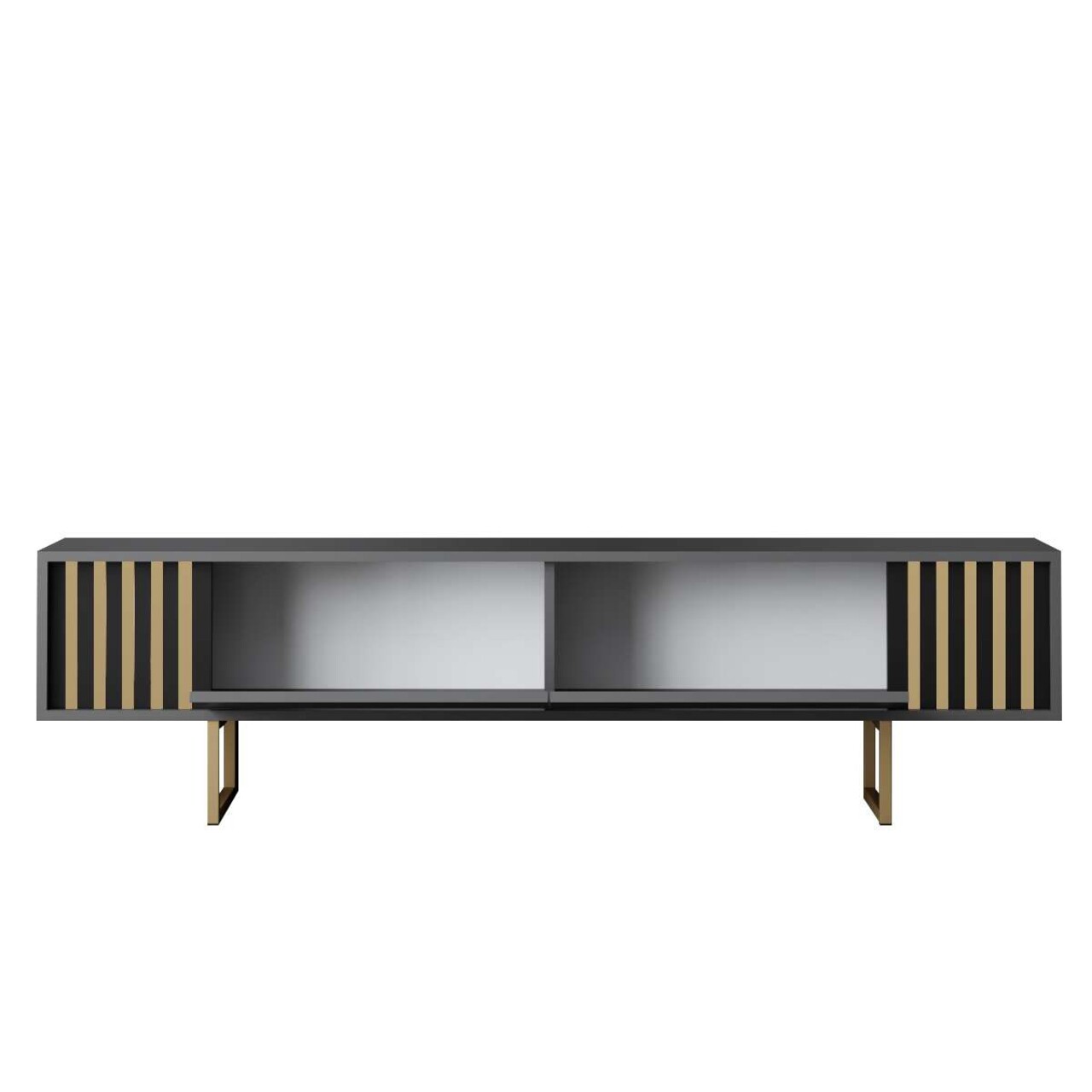 Comoda TV, Bexley, Gold Line, 180x30x48 cm, PAL, Antracit / Aur