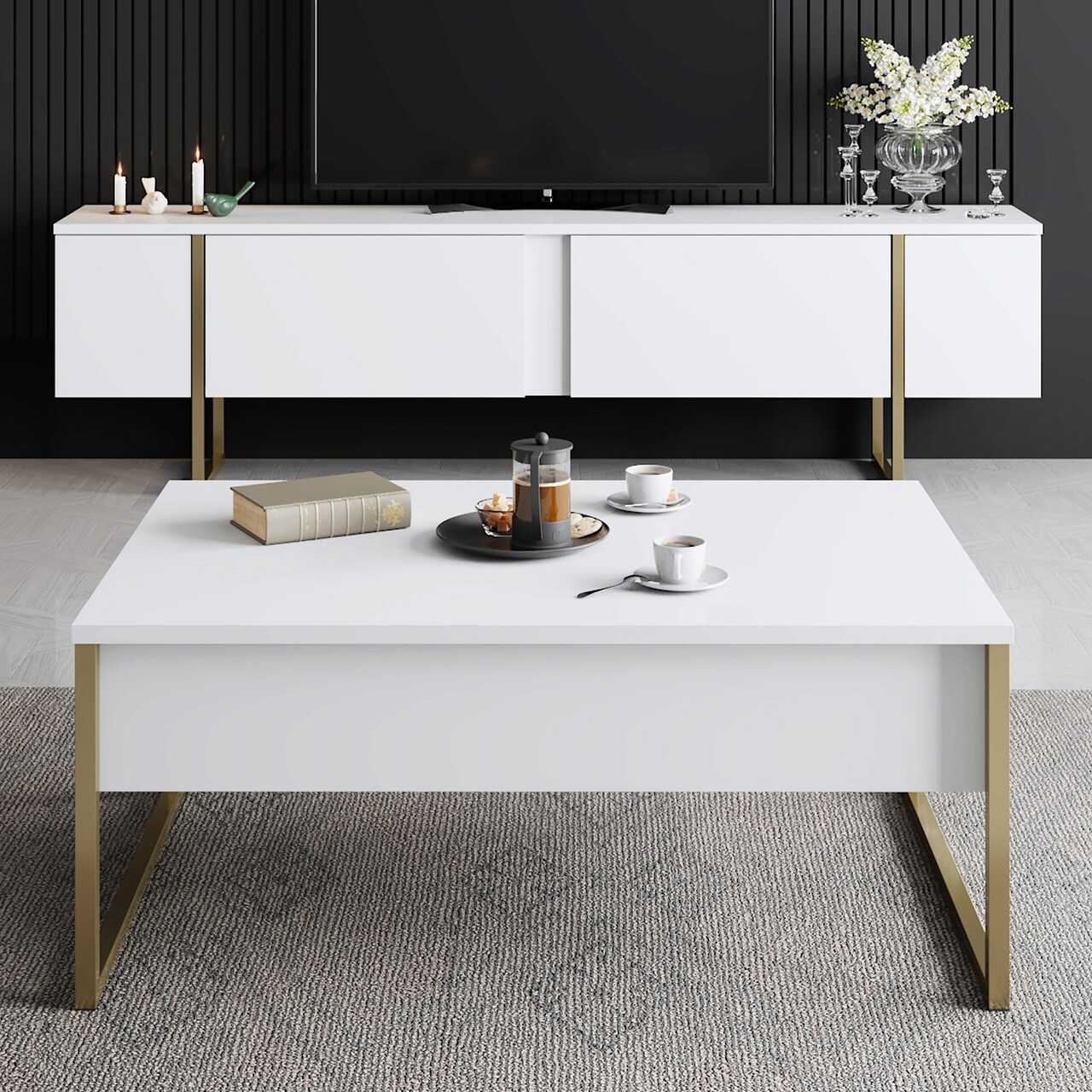 Comoda TV, Bexley, Luxe, 180x30x50 cm, PAL, Alb/Auriu