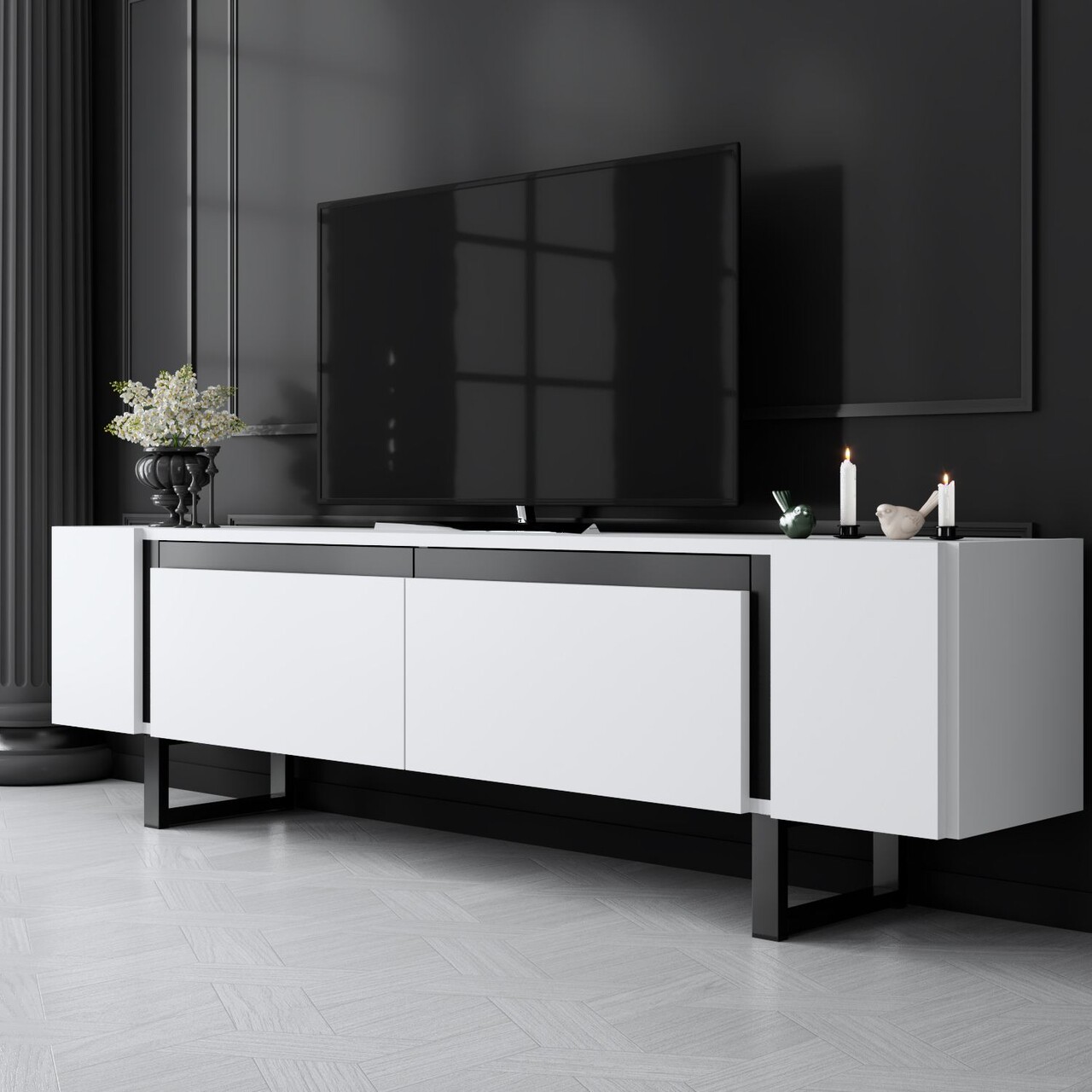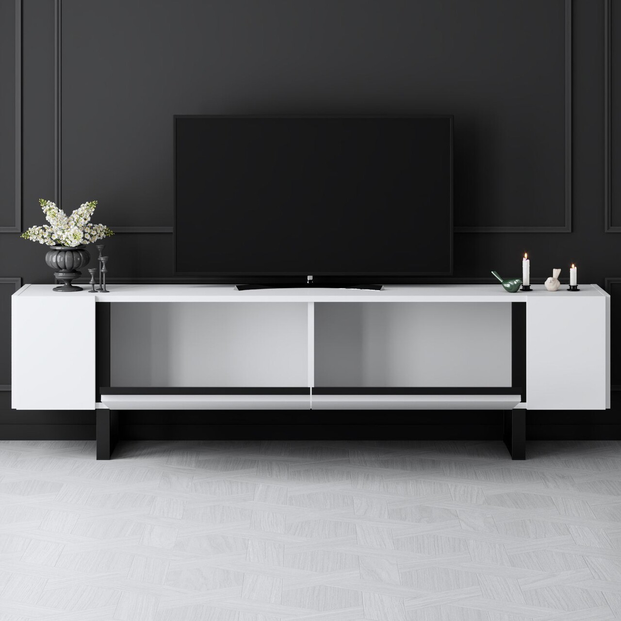 Comoda TV, Bexley, Yildiz, 180x50x30 cm, PAL, Alb/Negru