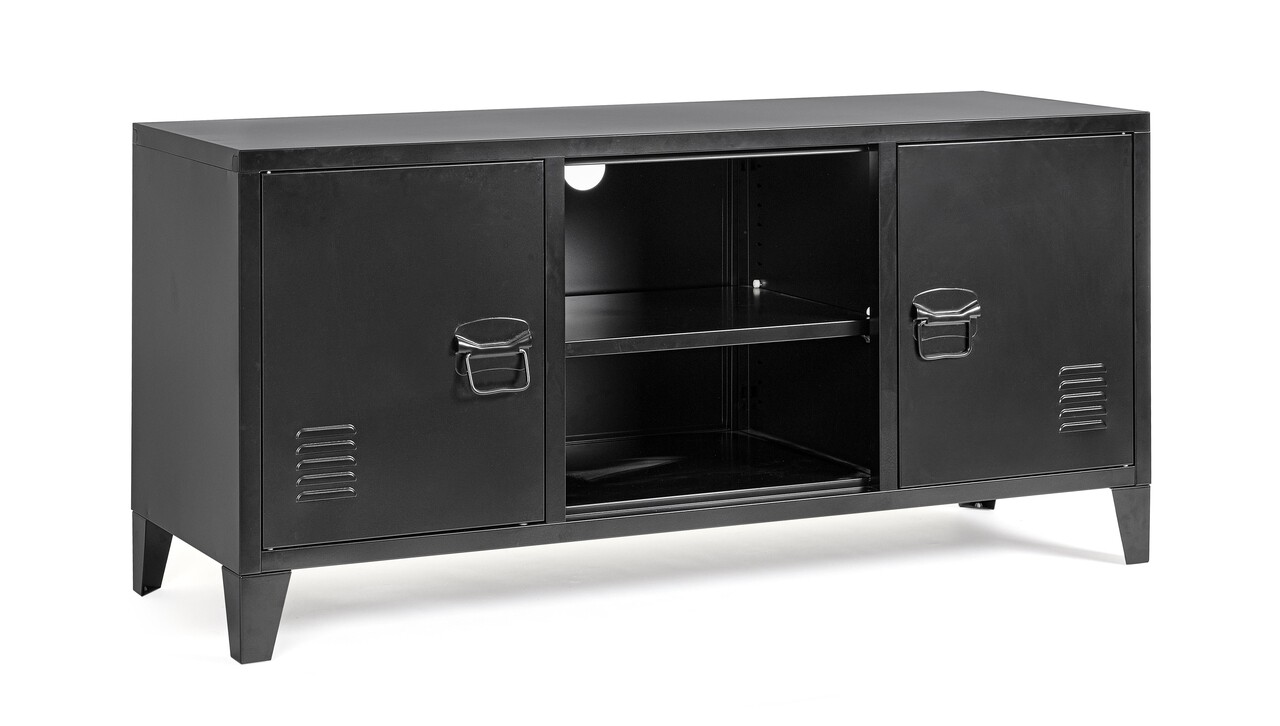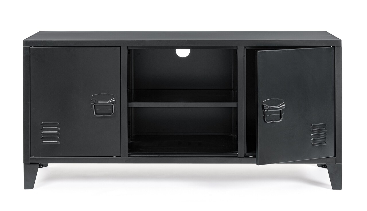 Comoda TV Cambridge, Bizzotto, 1 raft reglabil, 120.5 x 40 x 58.5 cm, otel, negru