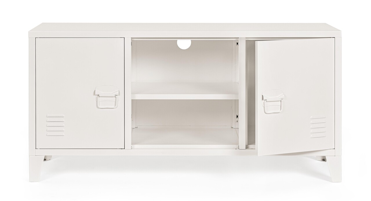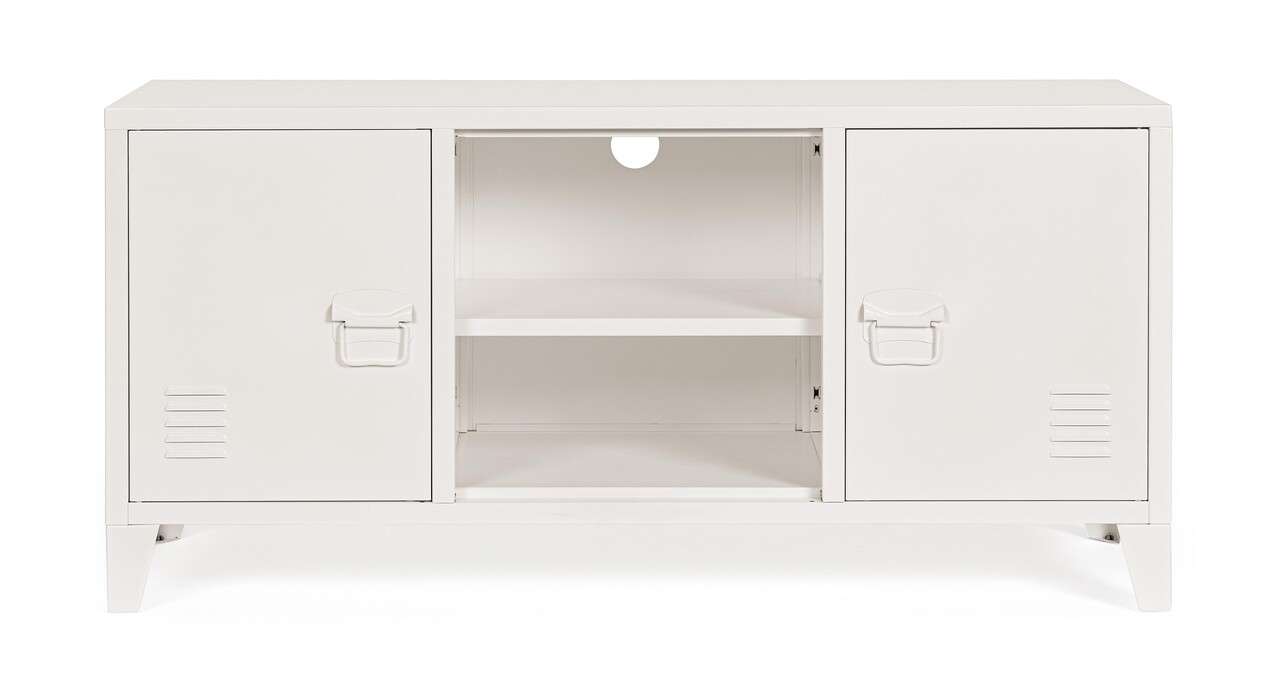 Comoda TV Cambridge, Bizzotto, 1 raft reglabil, 120.5x40x58.5 cm, otel, crem