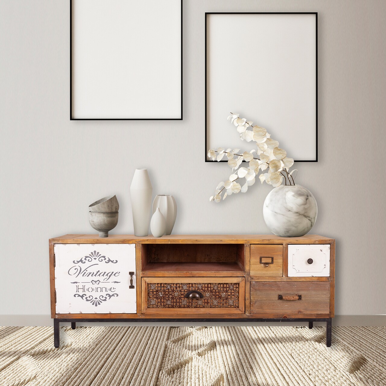 Comoda TV Collector, Creaciones Meng, 120x36.5x47.5 cm, lemn de brad