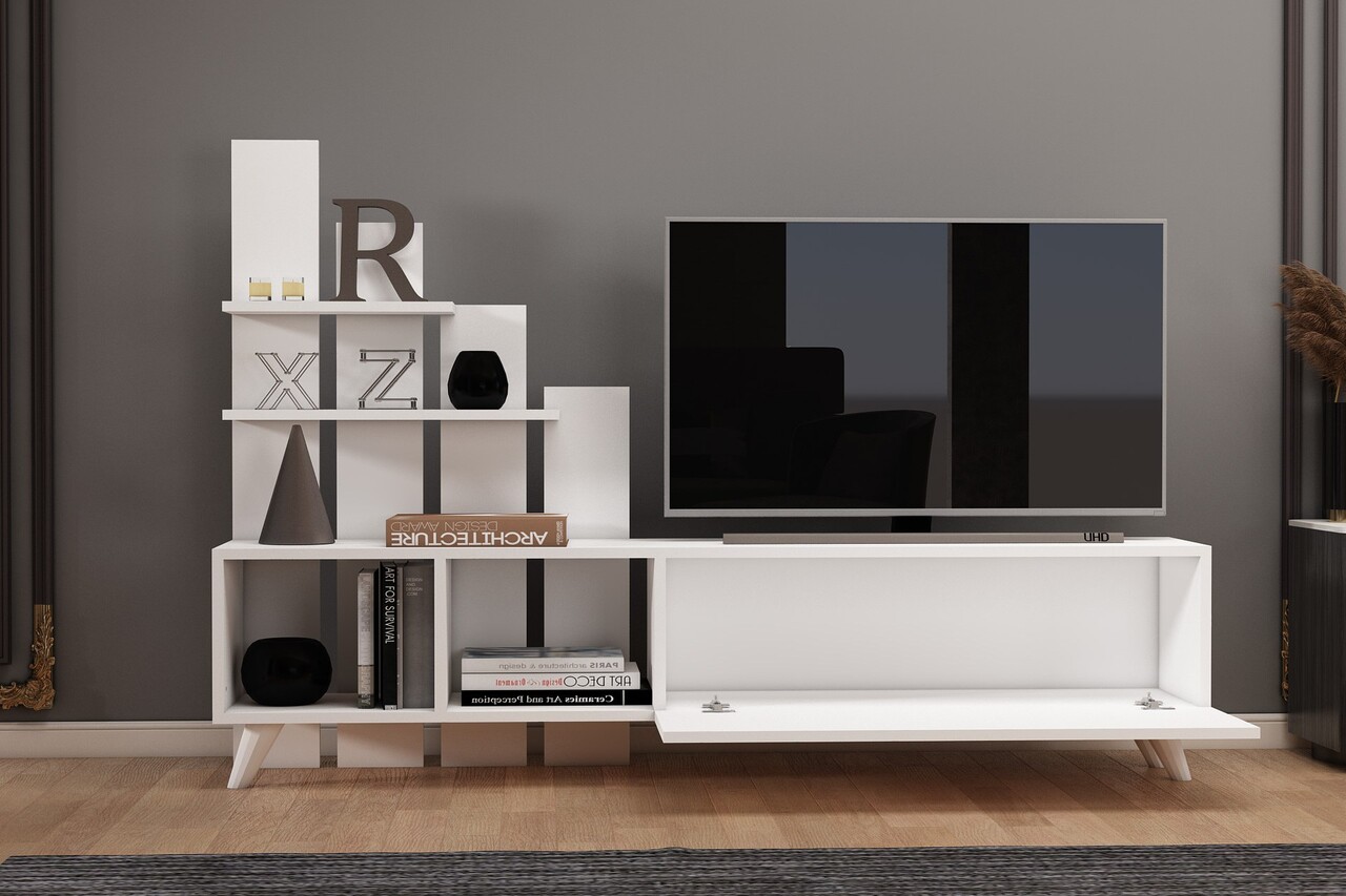 Comoda TV, Coraline, Vale, 160x115x33 cm, PAL, Alb