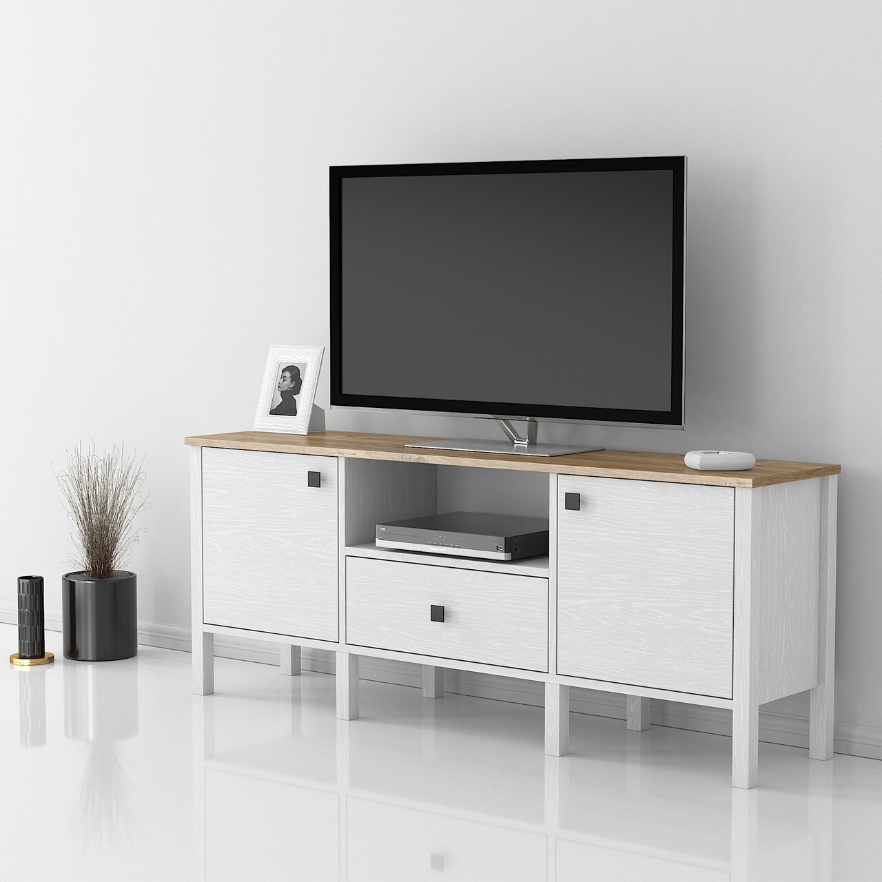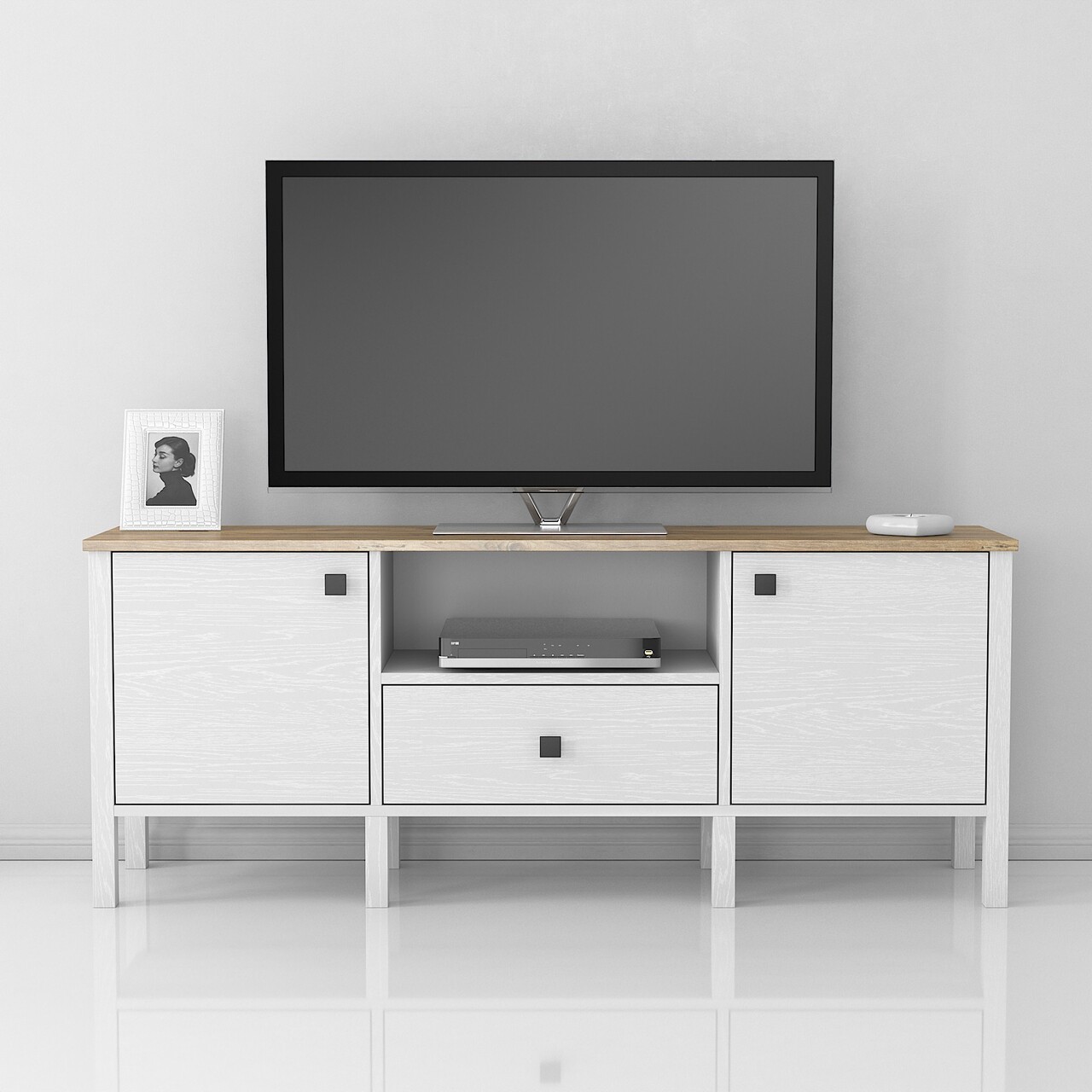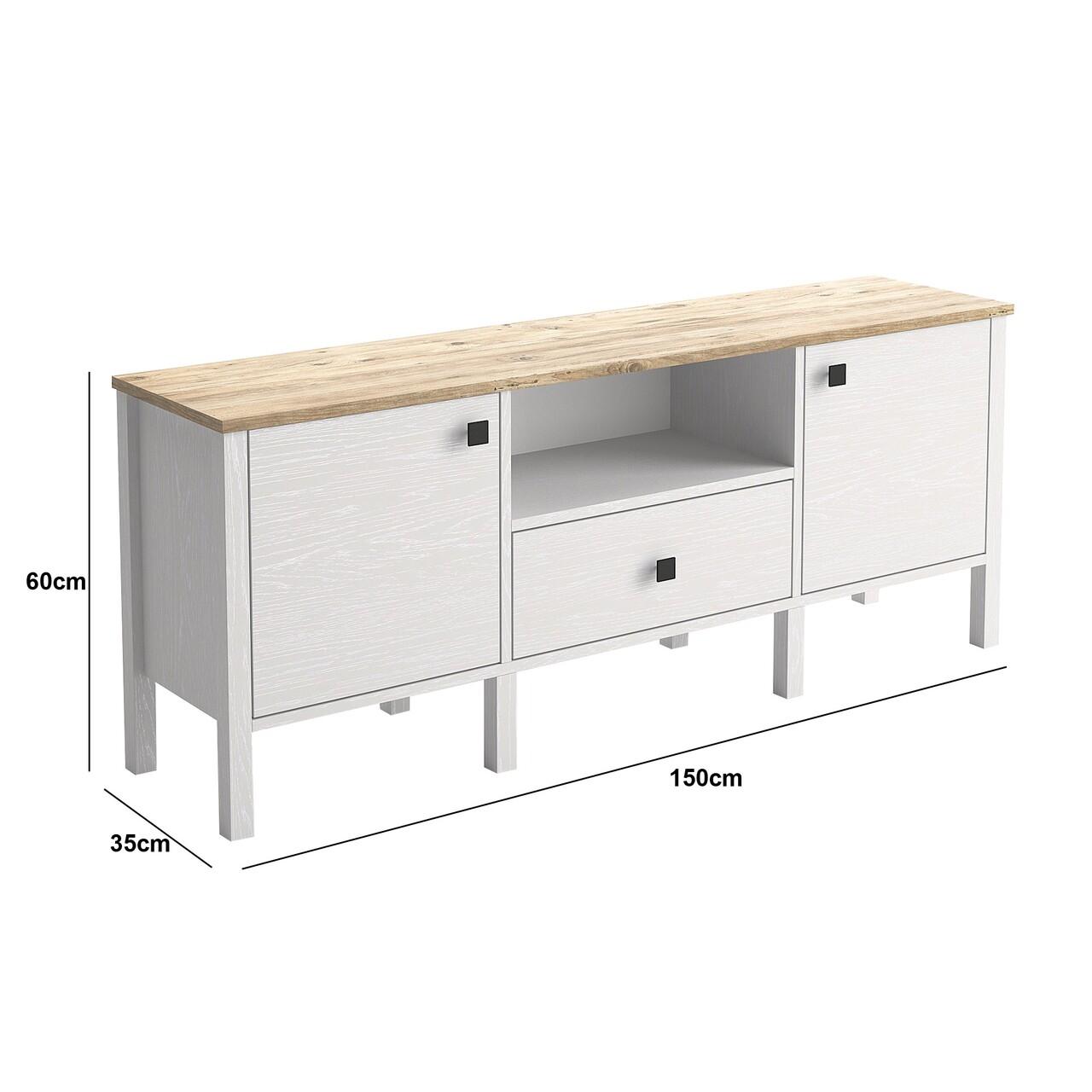 Comoda TV, Cordelia, FRN-10057, 150x60x35 cm, PAL, Maro/Alb