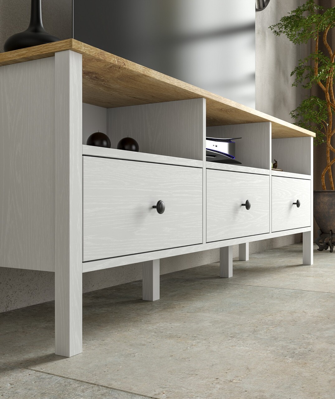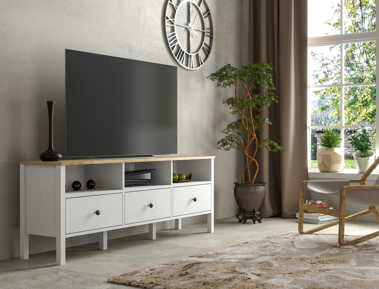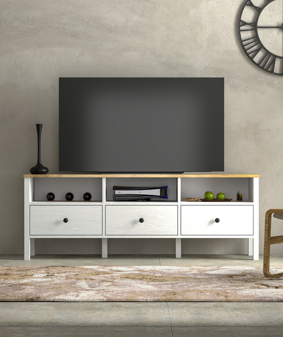 Comoda TV, Cordelia, FRN-20055, 160x58x35 cm, PAL, Maro/Alb