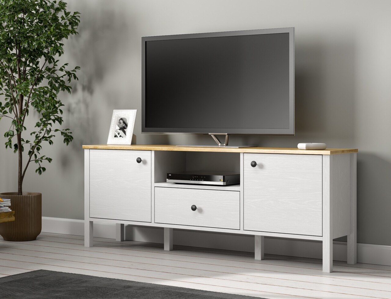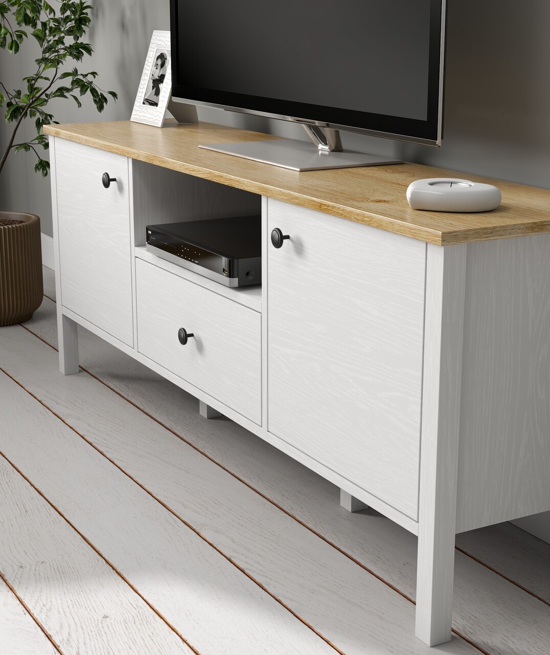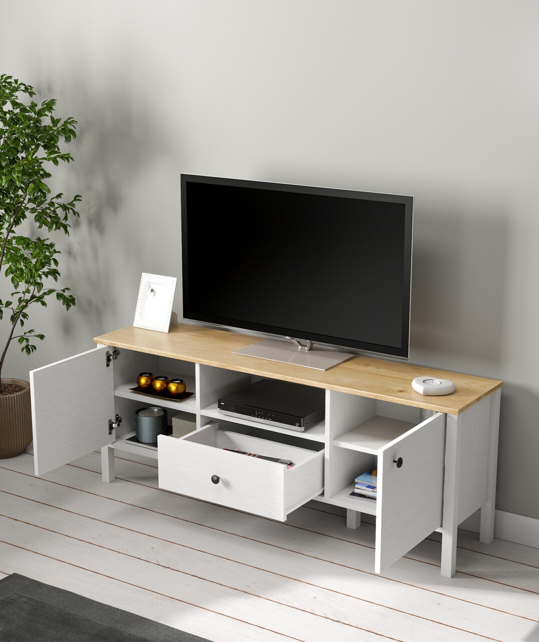Comoda TV, Cordelia, FRN-20057, 150x58x35 cm, PAL, Maro/Alb