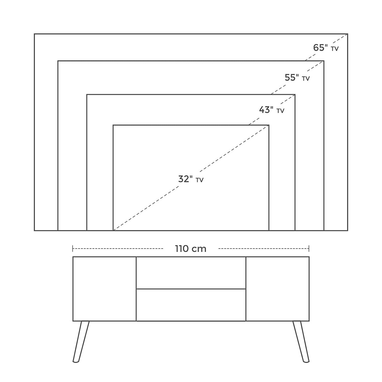 Comoda TV cu 2 usi, Vasagle, 110 x 40 x 49.5 cm, PAL/lemn de arbore de cauciuc, maro rustic