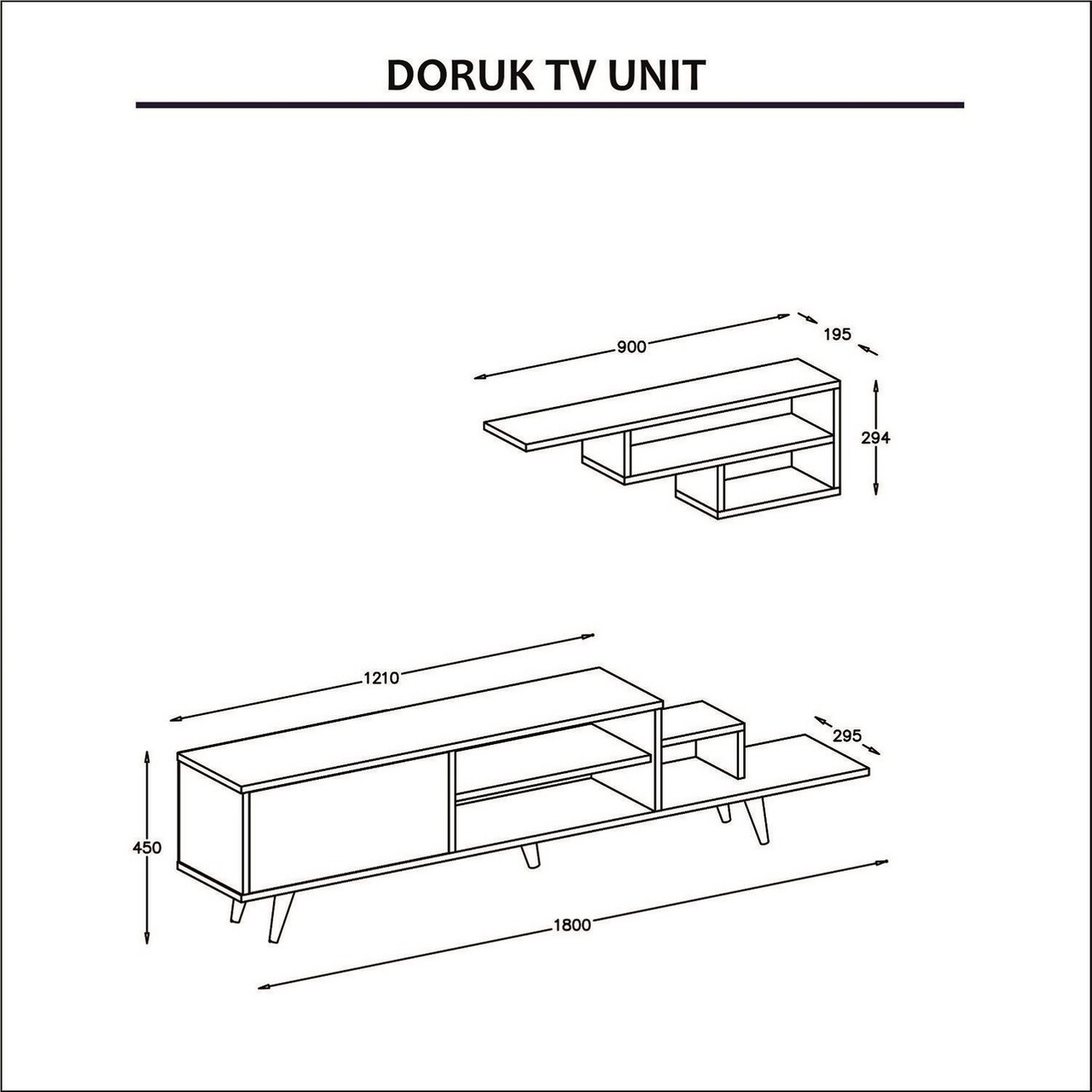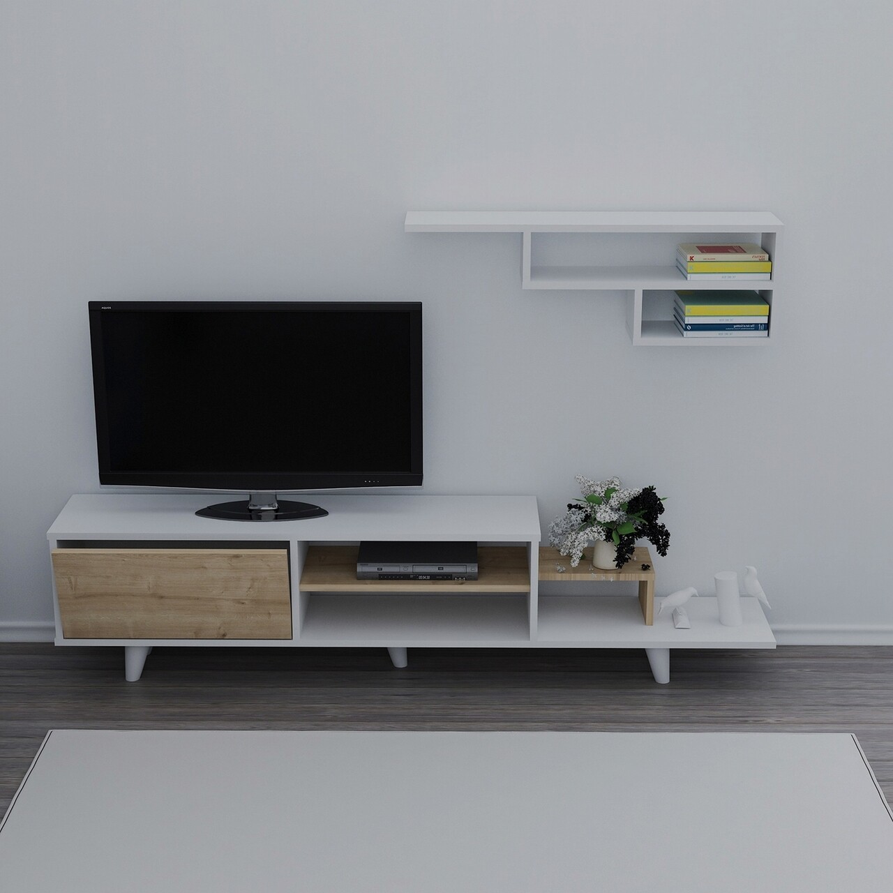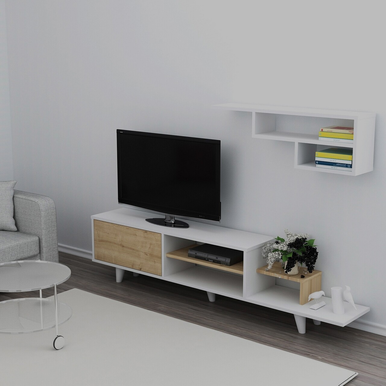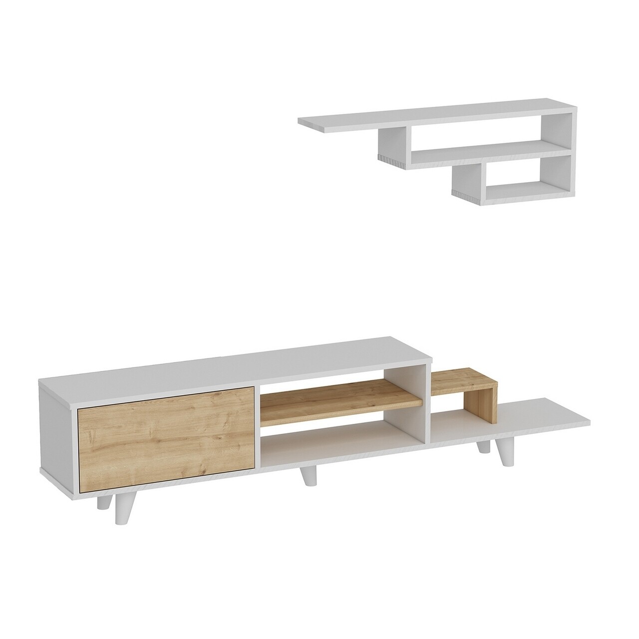 Comoda TV cu raft de perete Doruk, Maison in Design, 180 x 39.5 x 45 cm, alb/natural