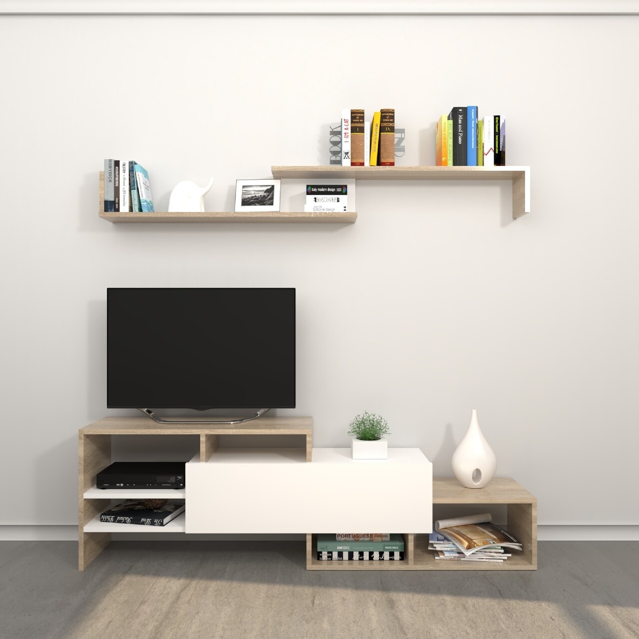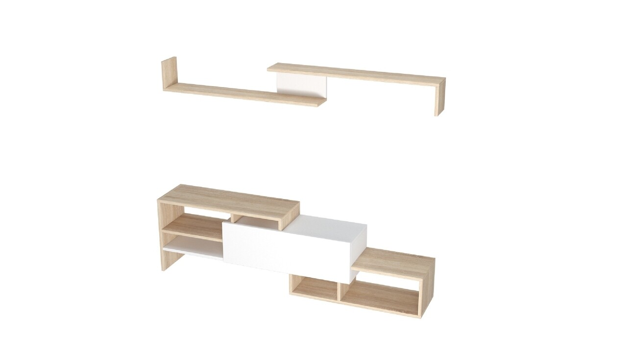 Comoda TV cu raft de perete Fenice, Homemania, 150 x 27 x 45 cm, alb/sonoma