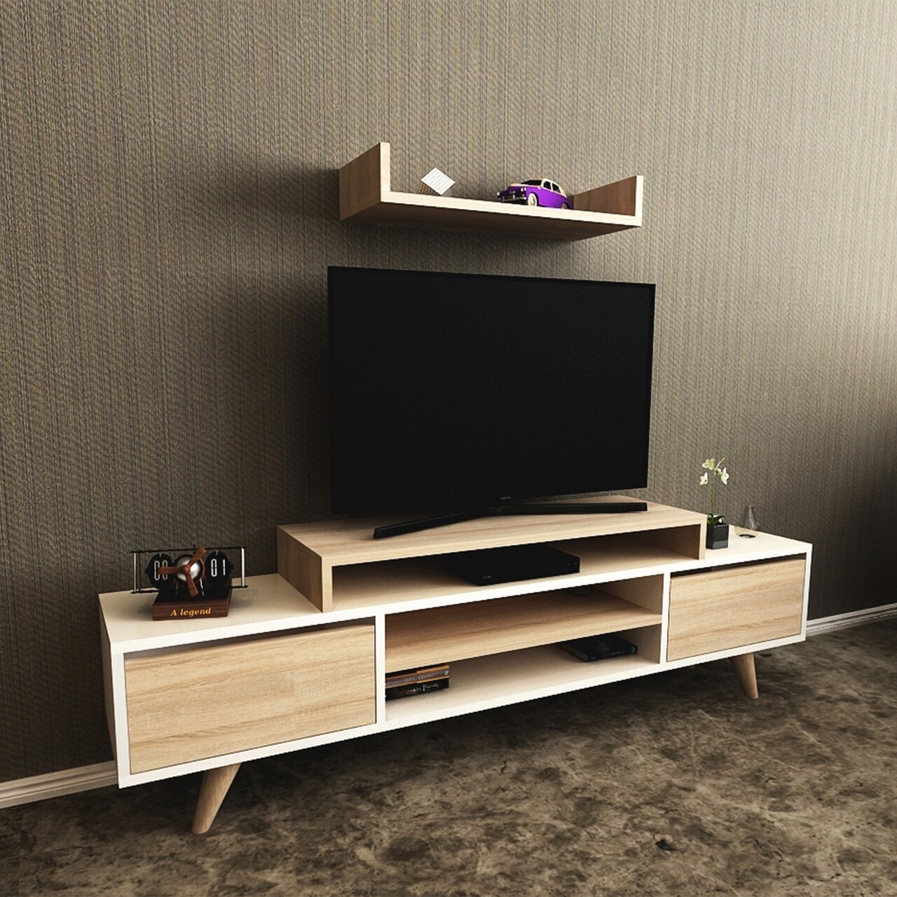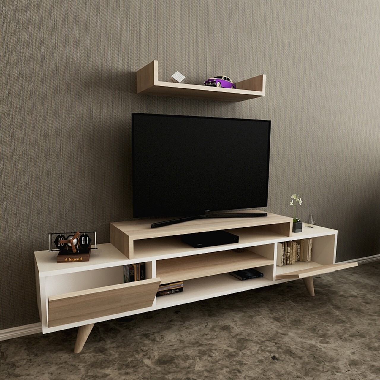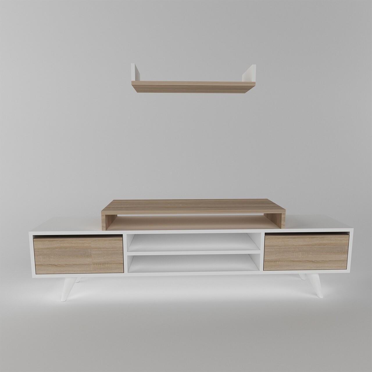Comoda TV cu raft de perete Melis, Homemania, 150 x 28.5 x 125 cm, alb/sonoma
