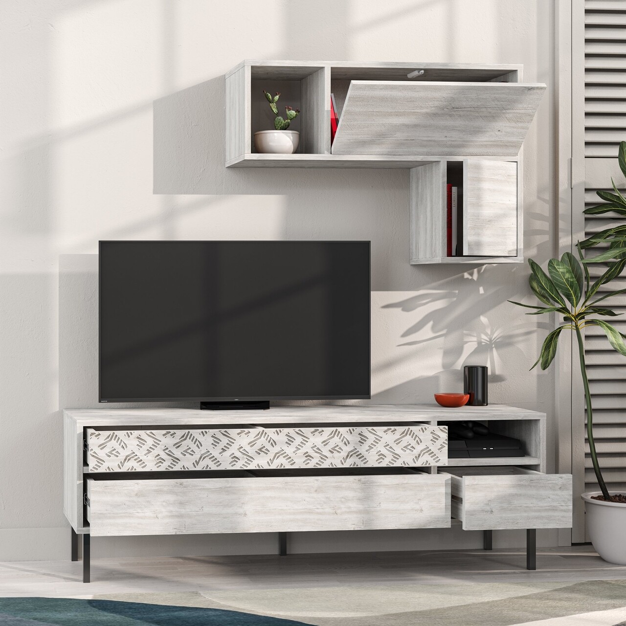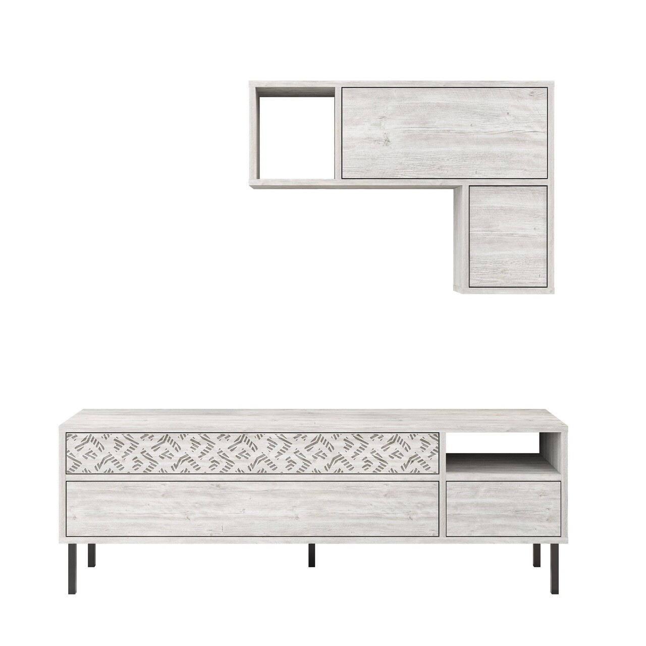 Comoda TV cu raft, Decortie, Heaton, pal melaminat, alb