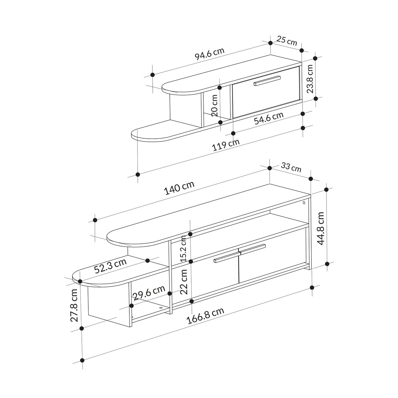 Comoda TV: 166.8 x 44.8 x 33 cm (Lxhxl);