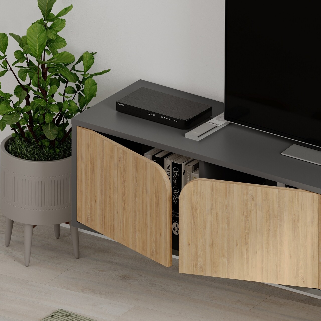 Comoda TV cu raft, Decortie, Spark, pal melaminat, stejar/antracit