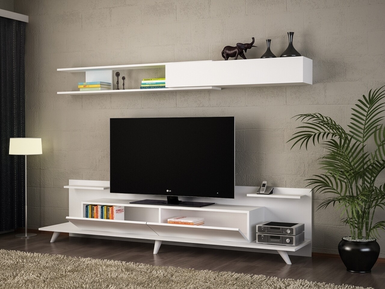 Comoda TV cu raft, Wooden Art, Dore White