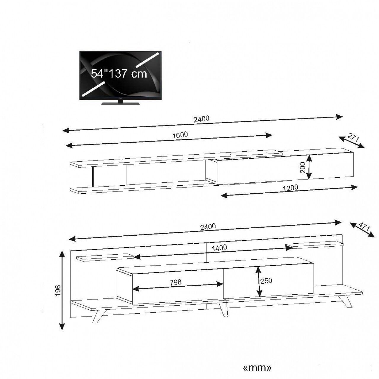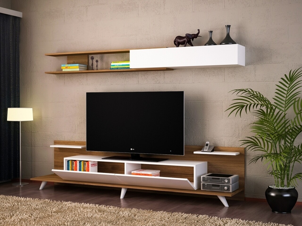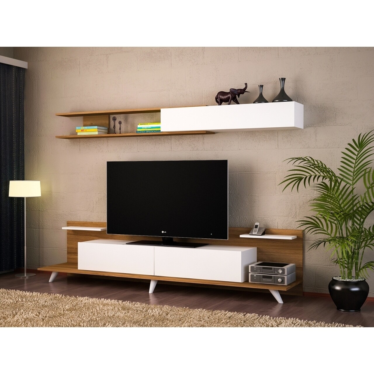 Comoda TV cu raft, Wooden Art, Dore White Walnut
