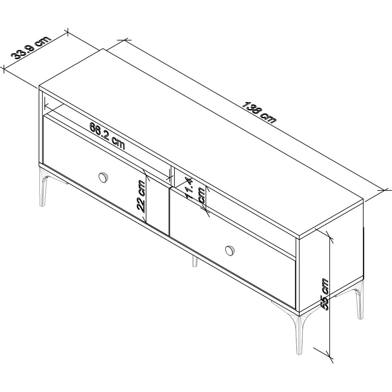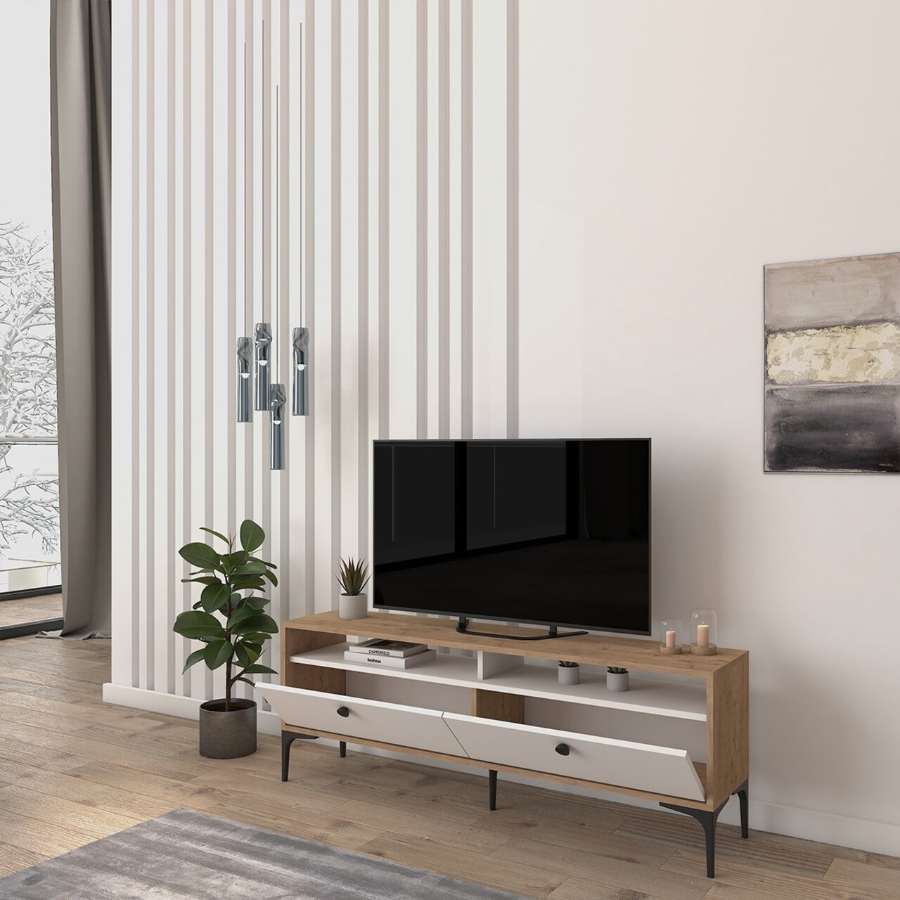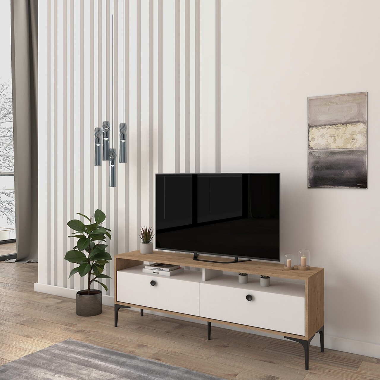 Comoda TV, Cugino, Eylul, 138x55x33.9 cm, PAL, Stejar / Alb