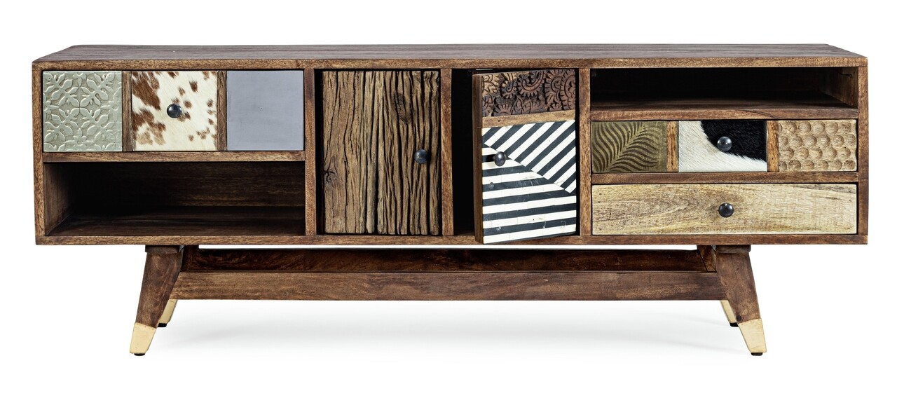Comoda TV Dhaval, Bizzotto, 140x40x48 cm, lemn de mango/MDF