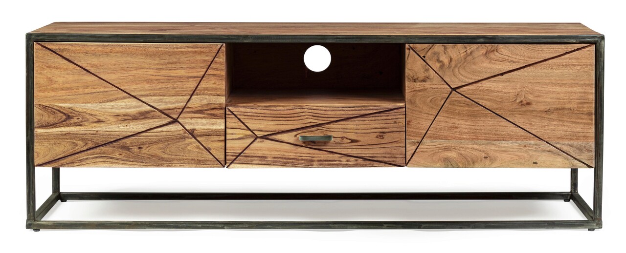 Comoda TV Egon, Bizzotto, 145x40x50 cm, otel/lemn de salcam