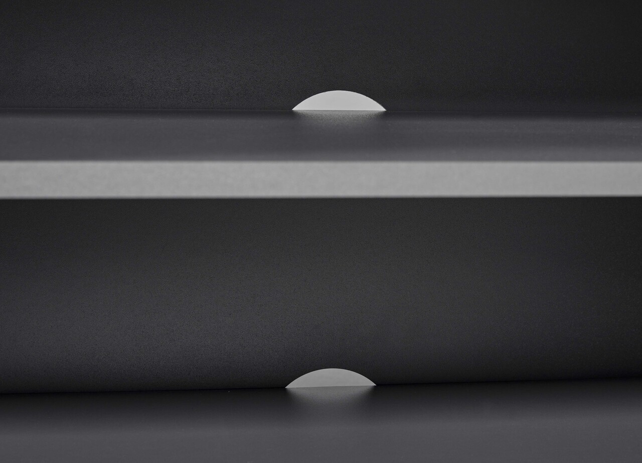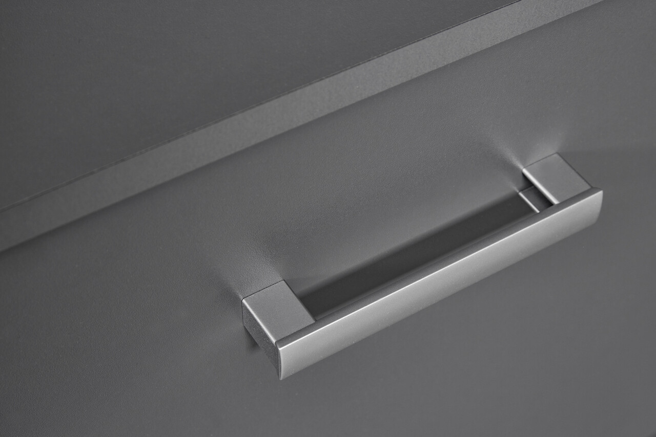 Acest suport TV a fost conceput pentru a se integra perfect in orice decor si a se potrivi in orice camera a casei. Culoarea sa moderna gri grafit este accentuata de manerele gri-argintiu. Liniile sale curate reflecta tendintele actuale de design interior. Se coordoneaza perfect cu biroul, rafturile si alte piese din seria „ELENZIO”.