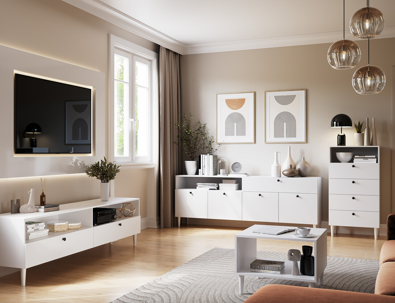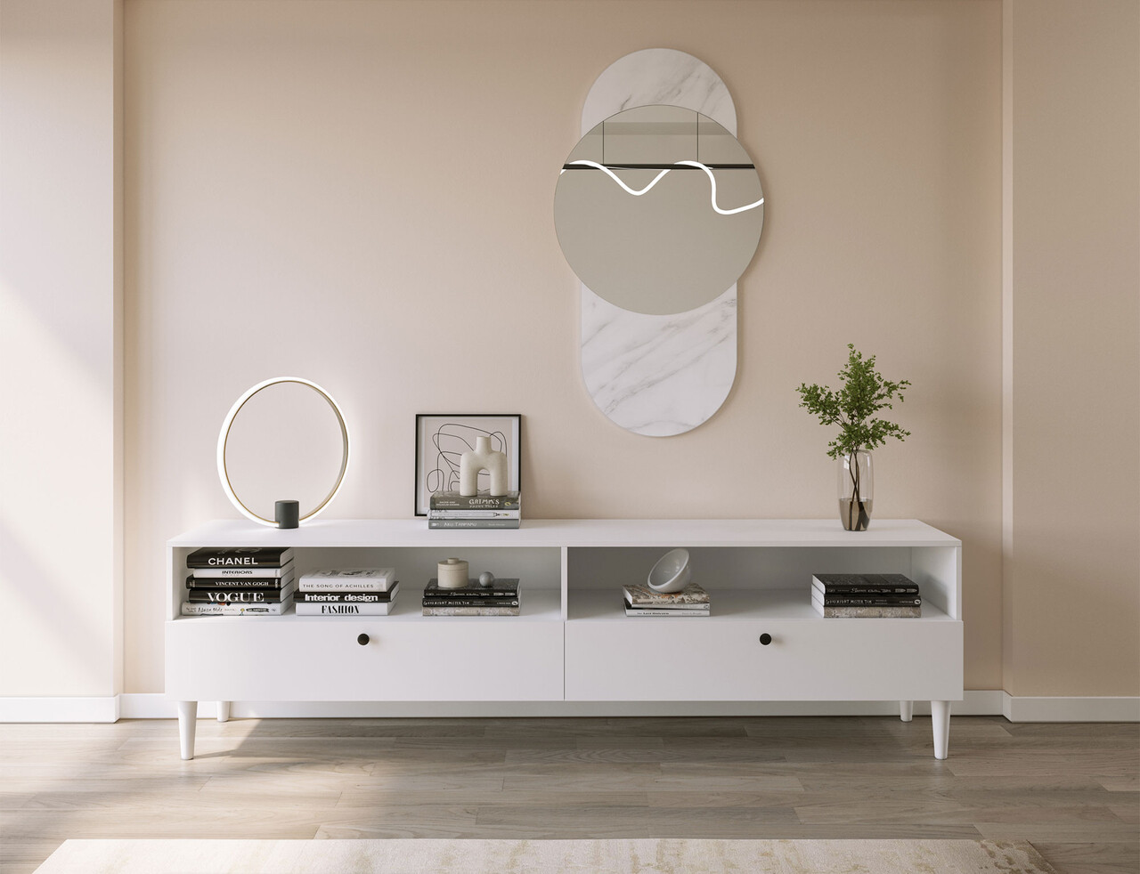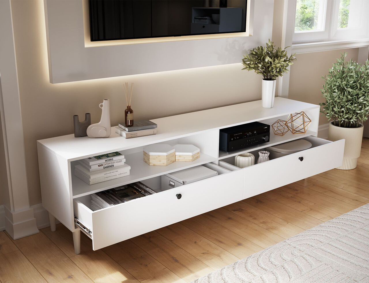 Comoda TV ELTAP, Dullum, 200x40x58 cm, PAL/PVC, alb