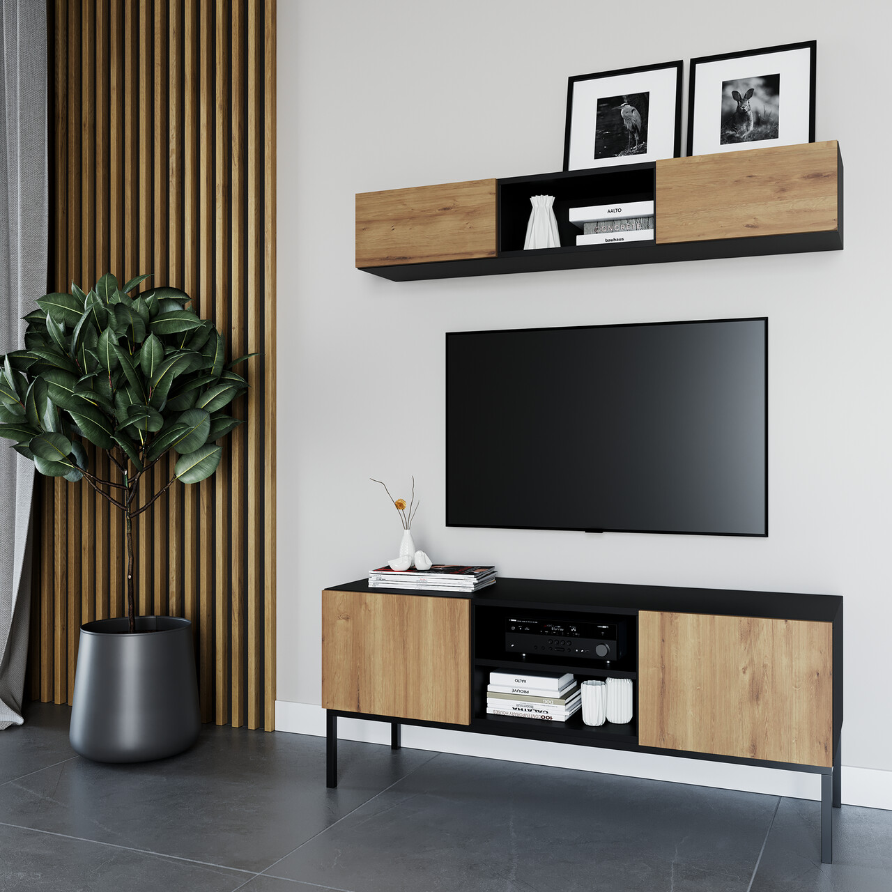 Comoda TV ELTAP, Lanzzi, 120x40x50 cm, MDF laminat, negru/stejar