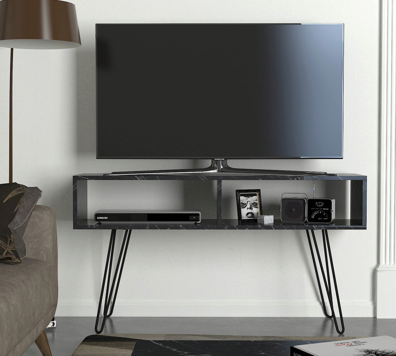 Comoda TV, Furny Home, Alya, 120x68.1x29.5 cm, Marmură / Negru