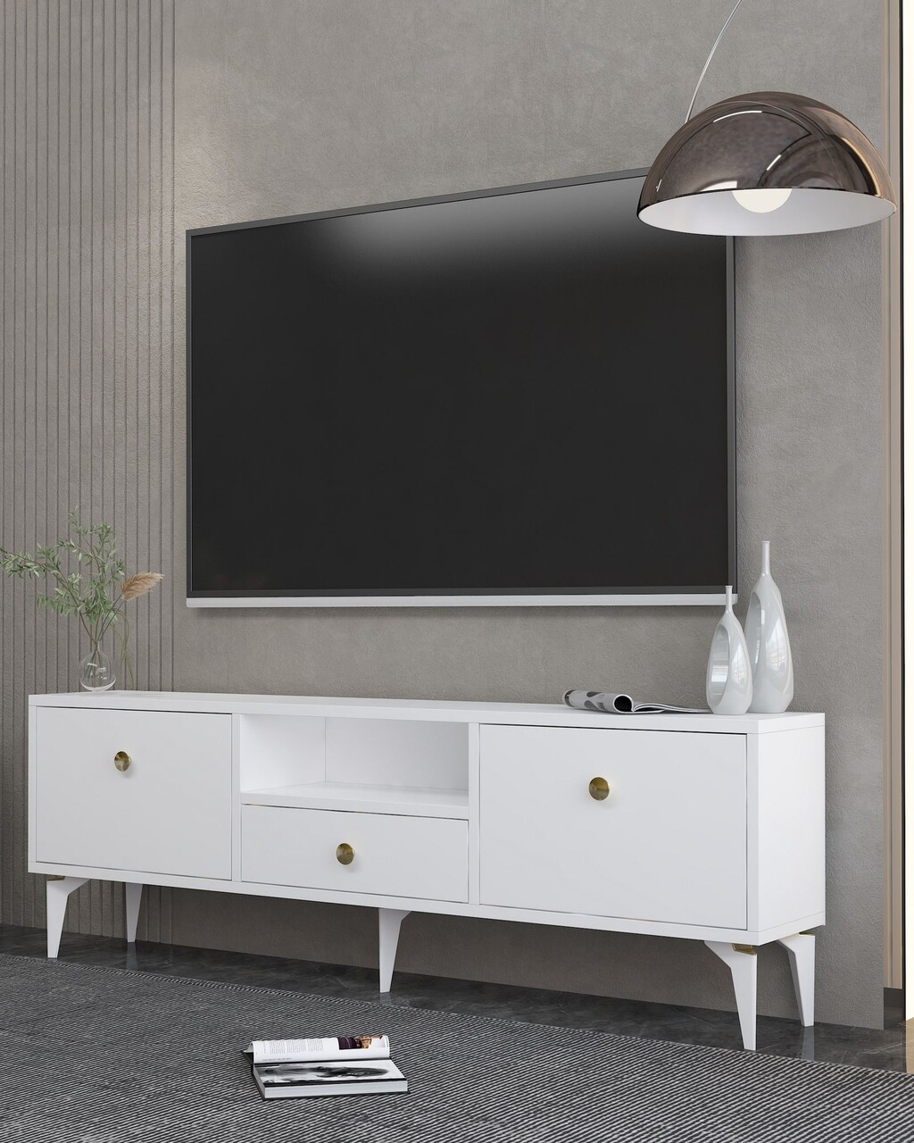 Comoda TV, Hanah Home, 1300-DROP-1, 140x49x30 cm, PAL , Alb/Auriu