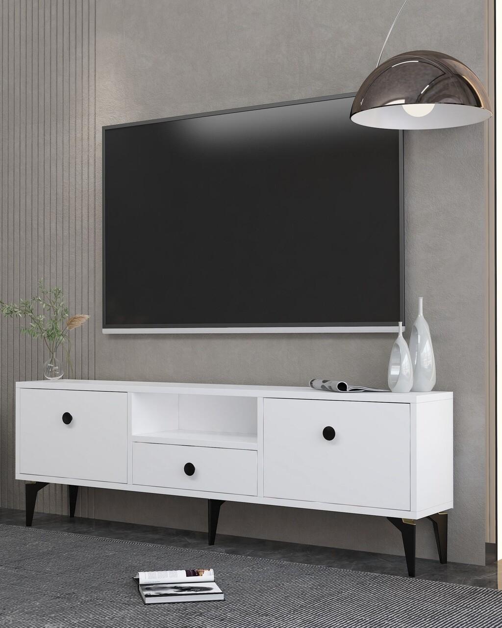 Comoda TV, Hanah Home, 1300-DROP-1, 140x49x30 cm, PAL , Alb/Negru