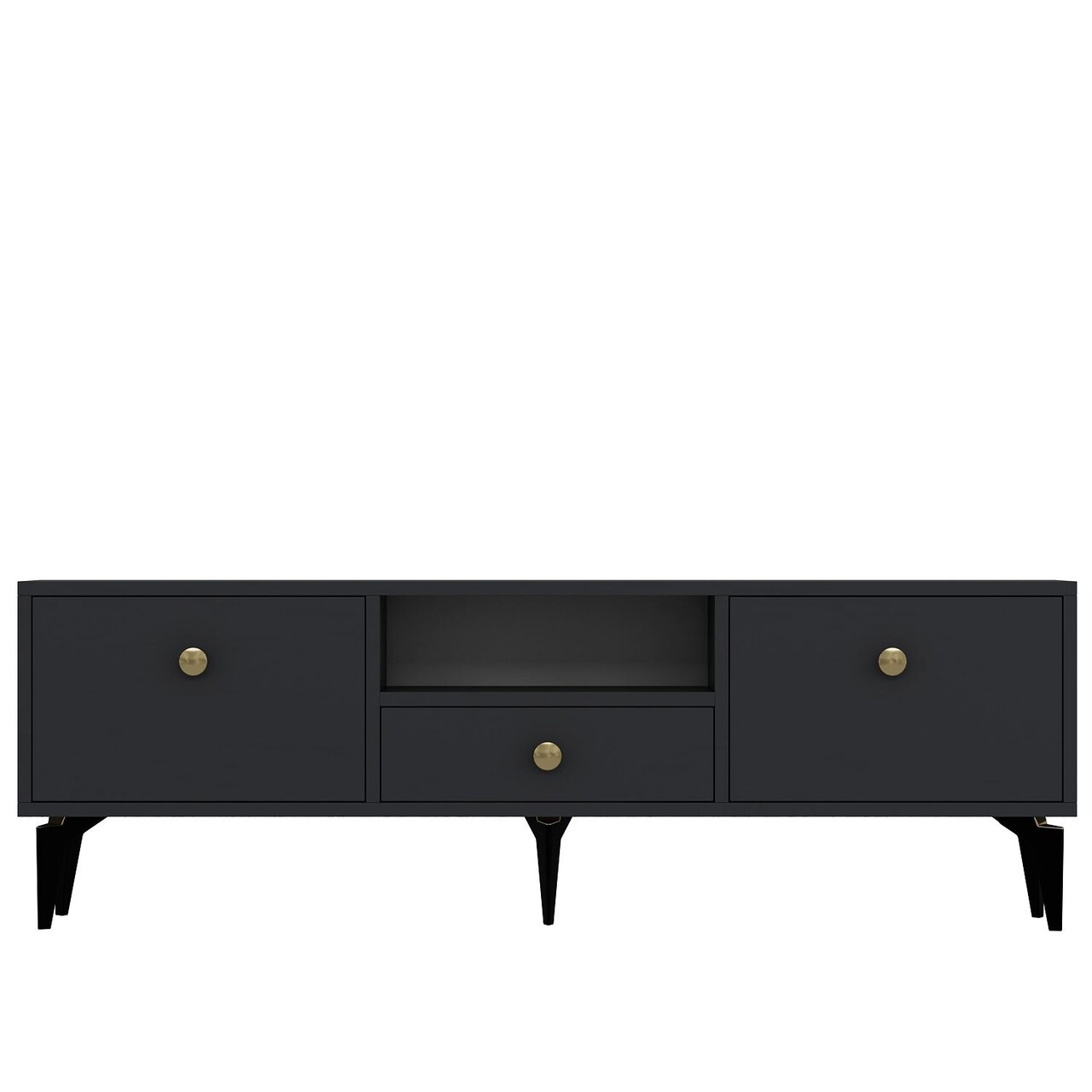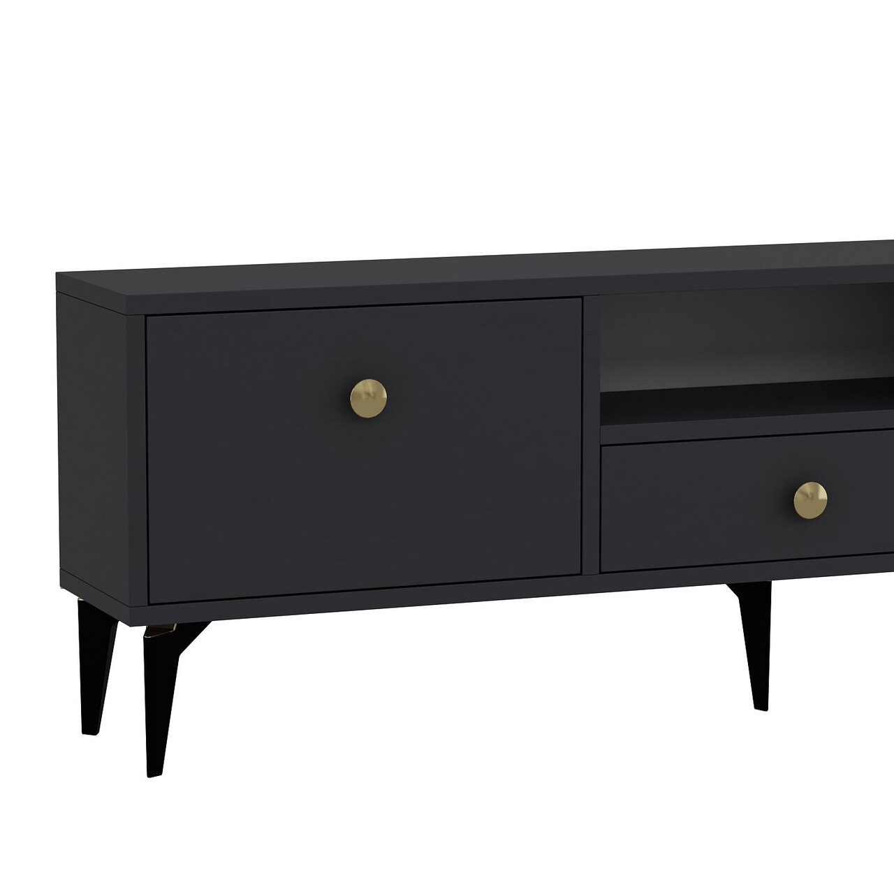 Comoda TV, Hanah Home, 1300-DROP-1, 140x49x30 cm, PAL , Antracit / Aur