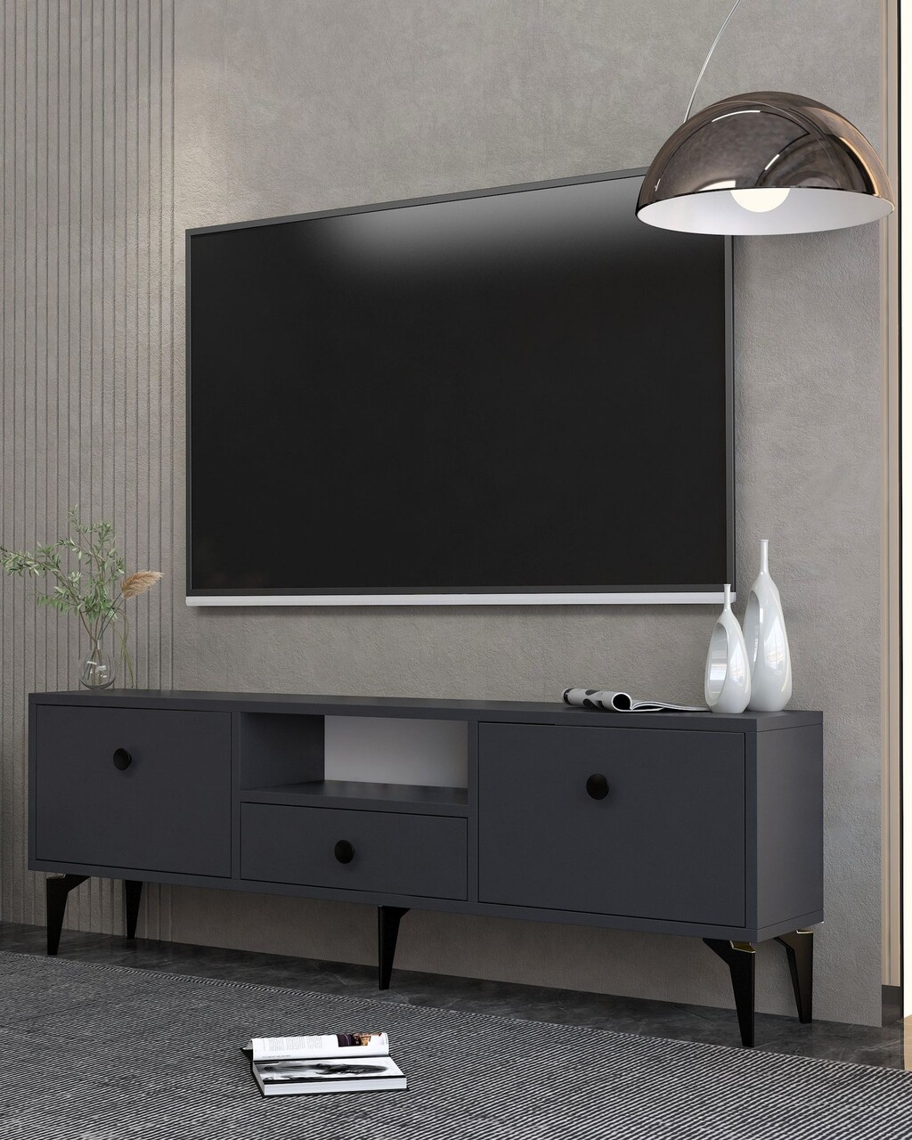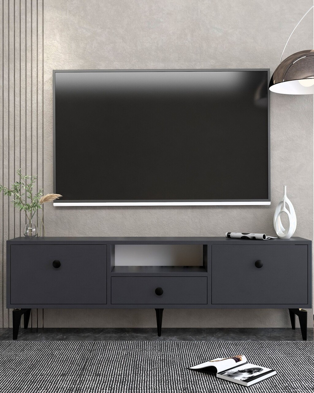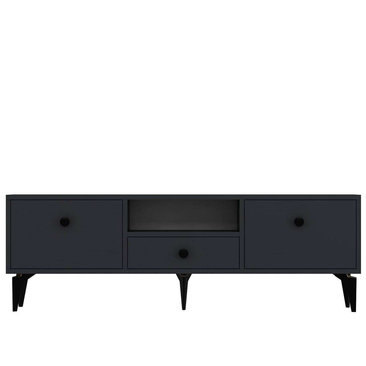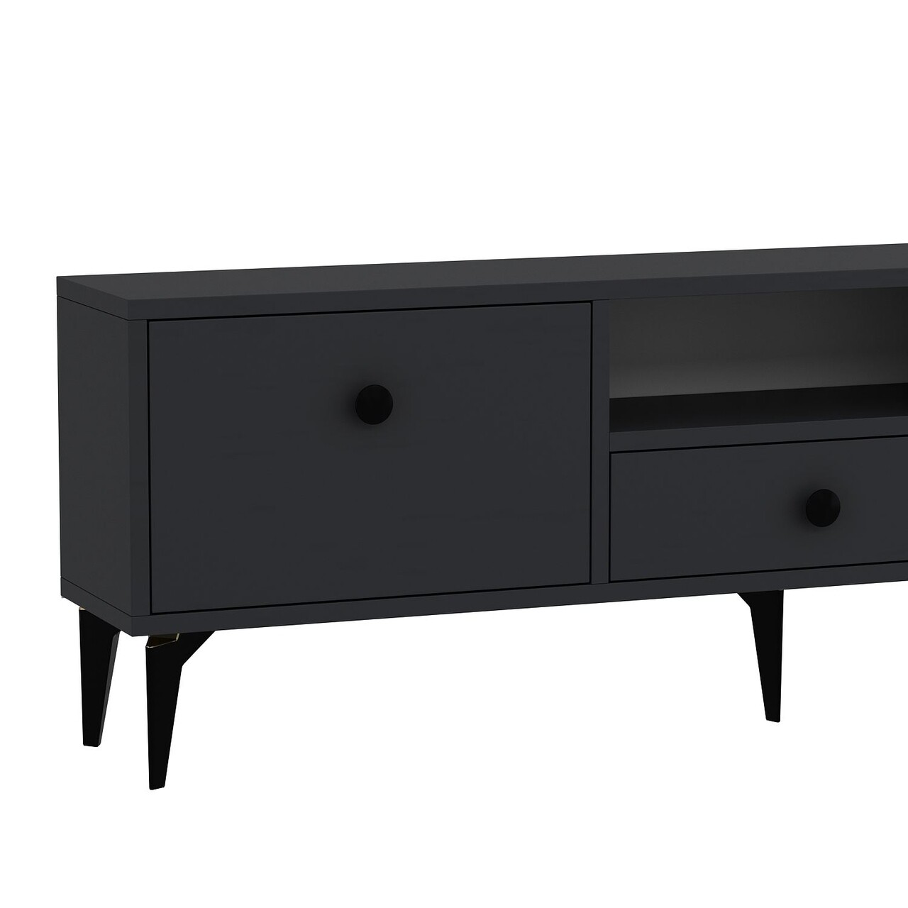 Comoda TV, Hanah Home, 1300-DROP-1, 140x49x30 cm, PAL , Antracit / Negru