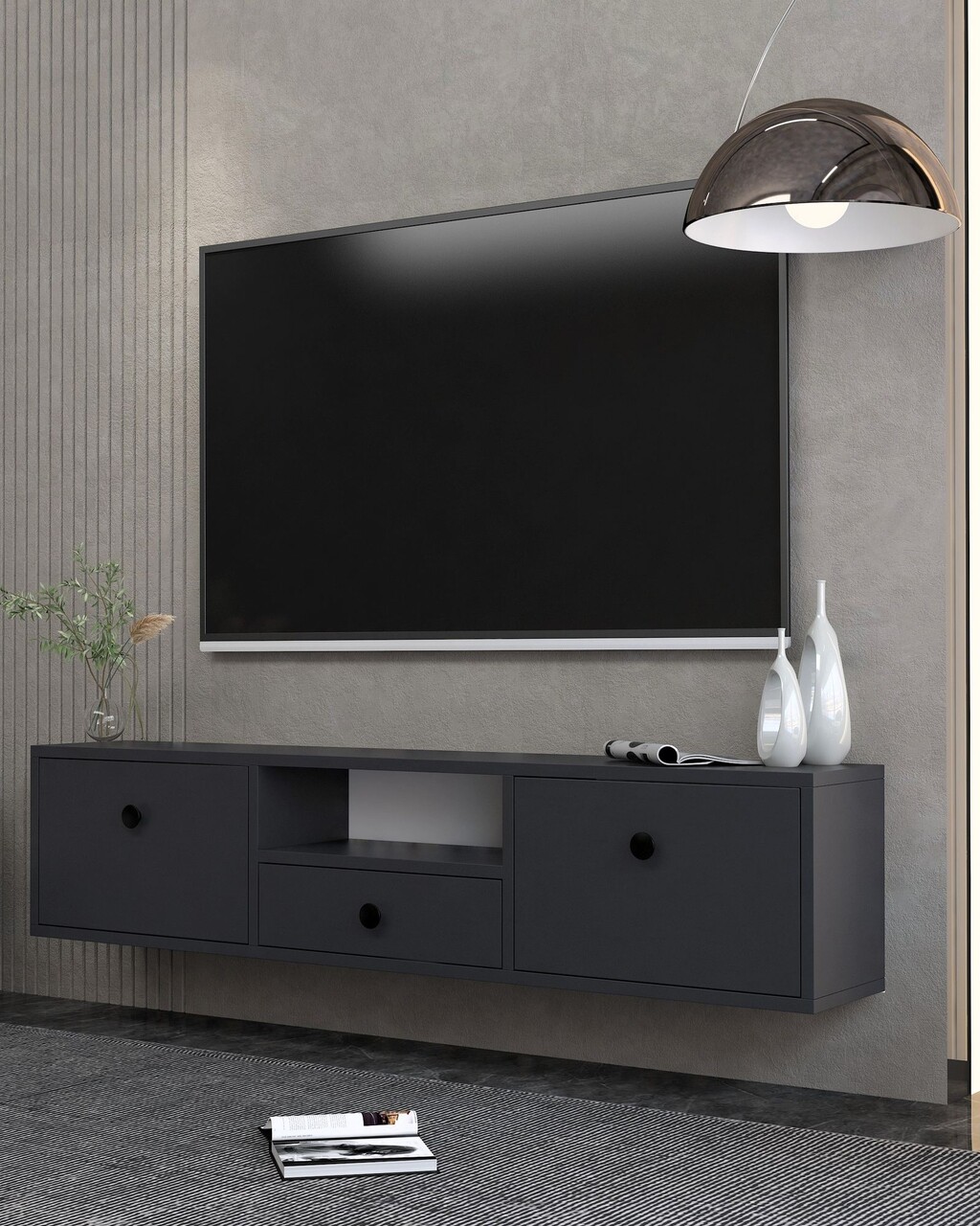 Comoda TV, Hanah Home, 1301-DROP-1, 140x30x30 cm, PAL , Antracit / Negru