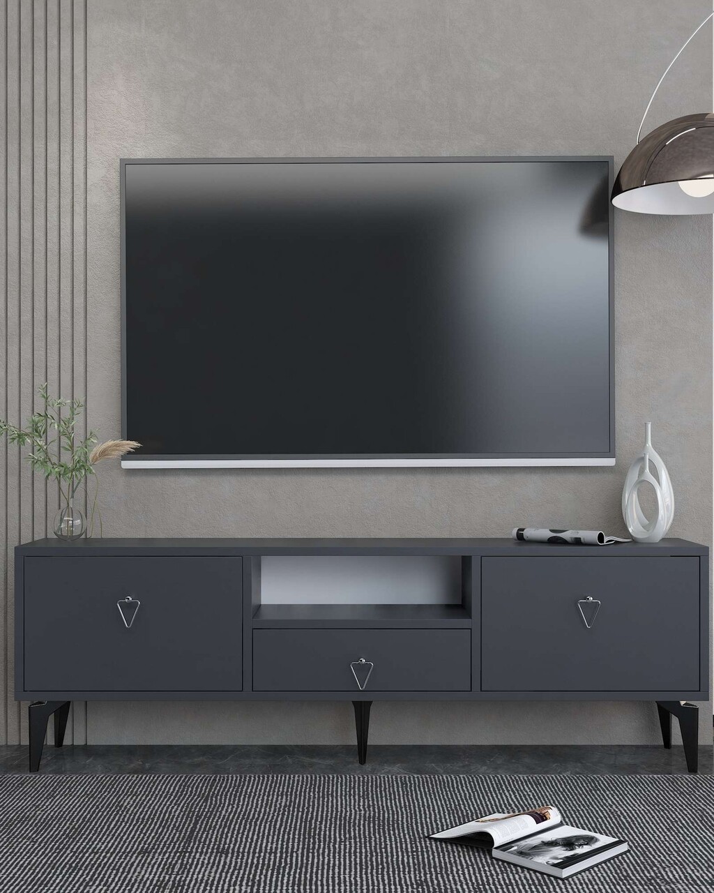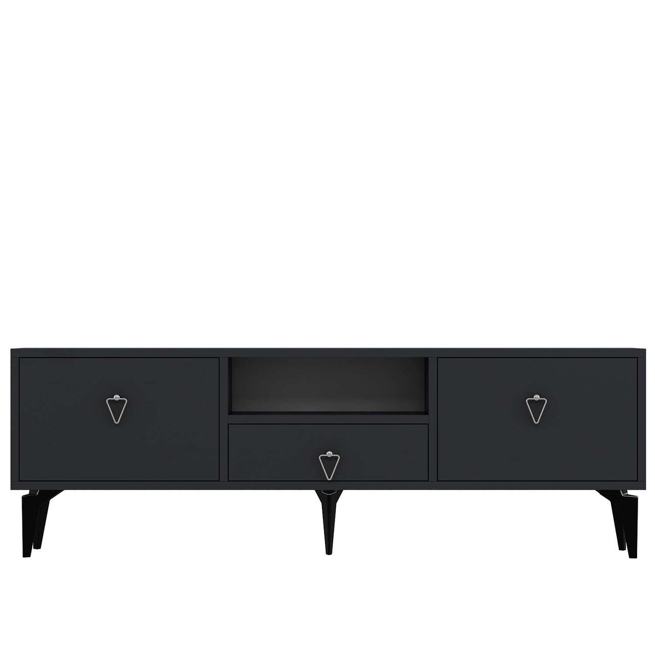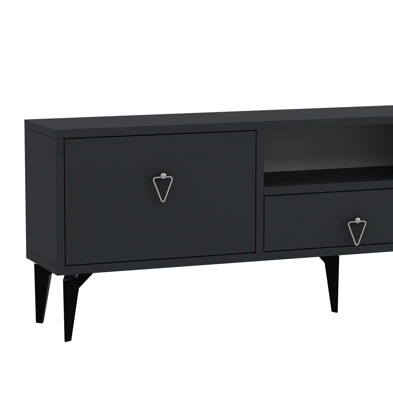 Comoda TV, Hanah Home, 1302-DROP-1, 140x49x30 cm, PAL , Antracit / Argintiu