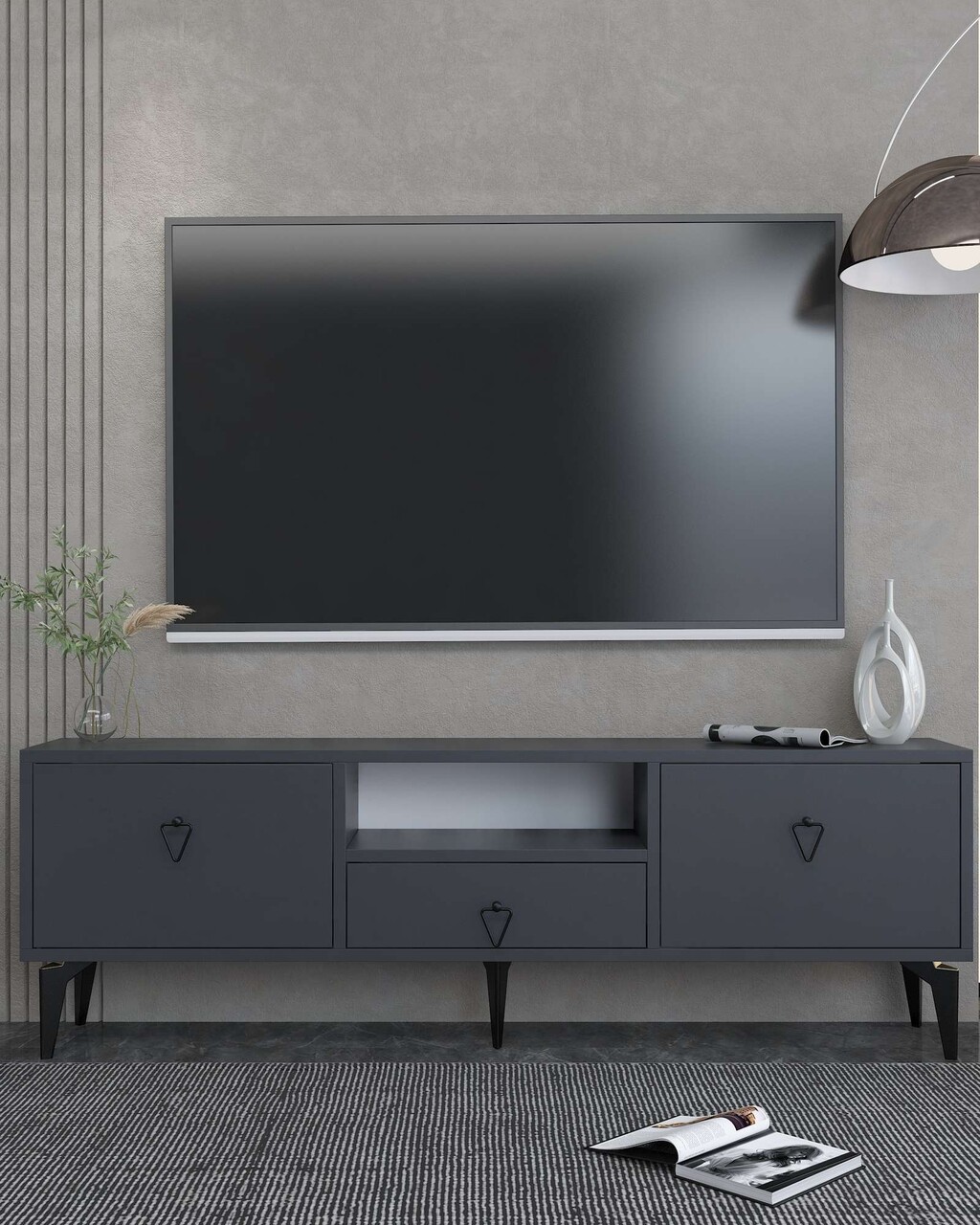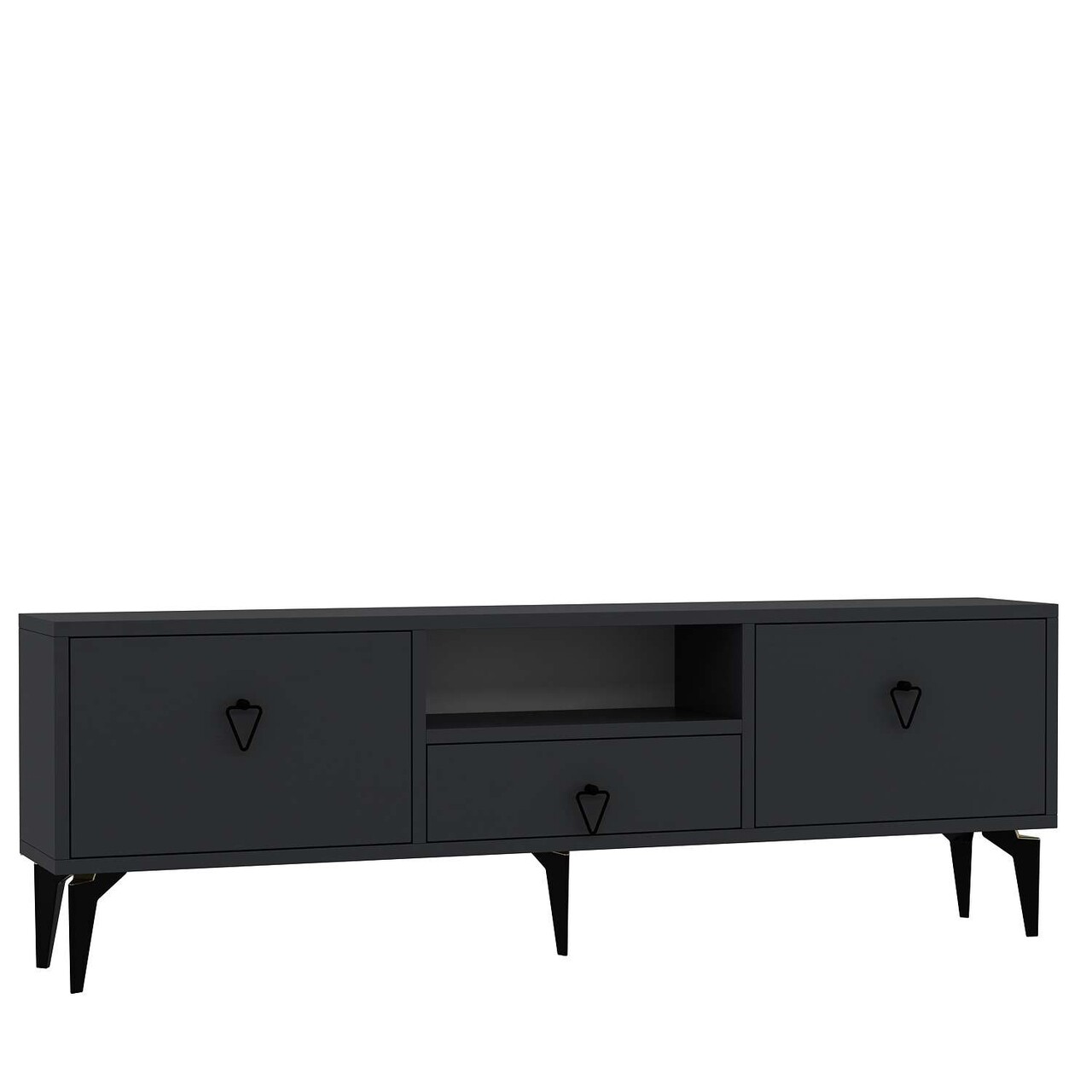 Comoda TV, Hanah Home, 1302-DROP-1, 140x49x30 cm, PAL , Antracit / Negru