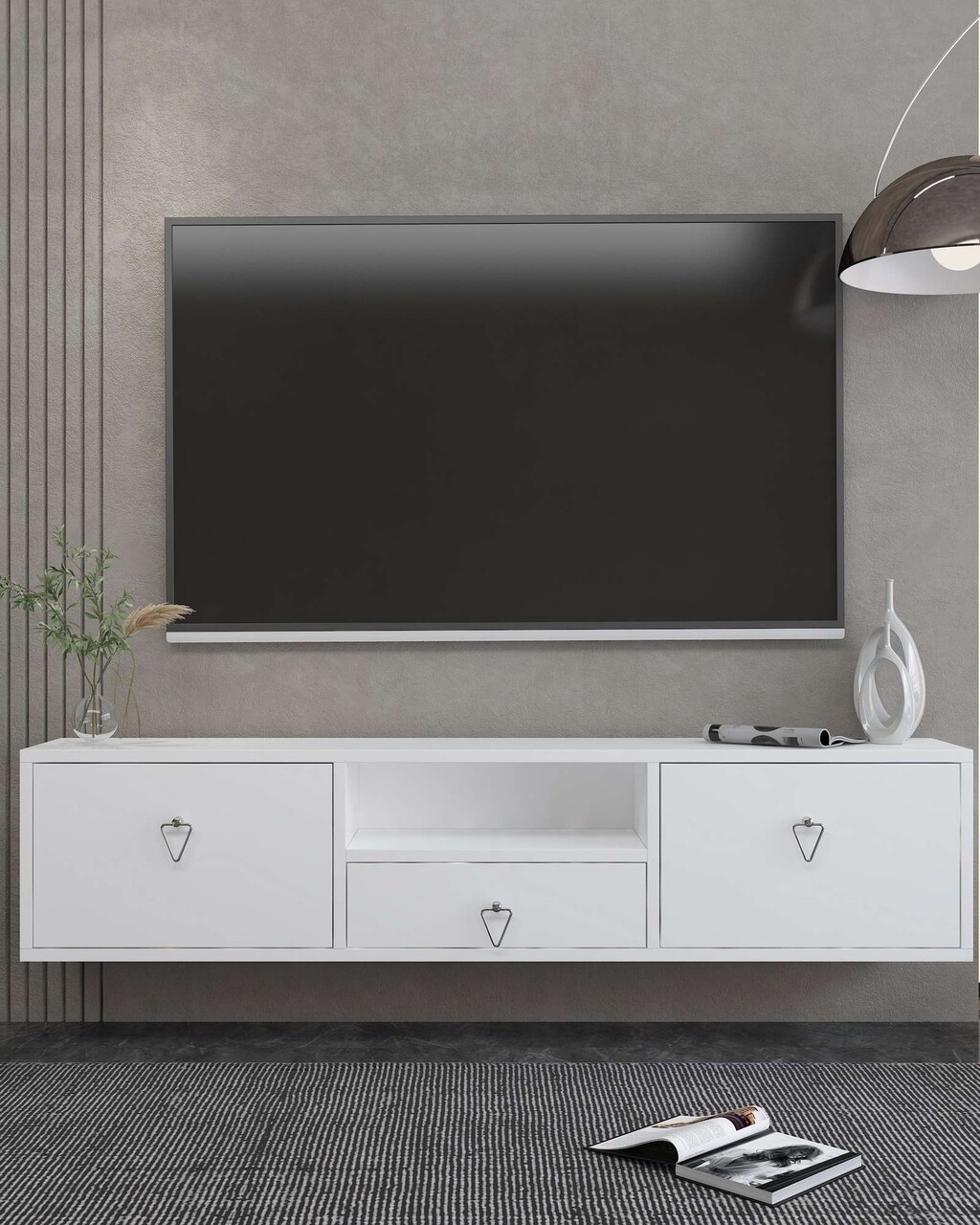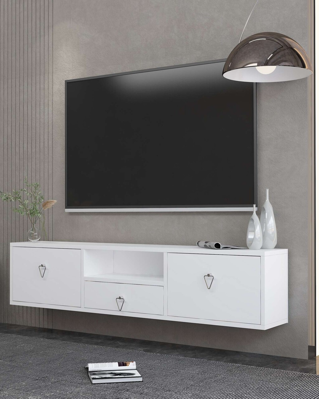 Comoda TV, Hanah Home, 1303-DROP-1, 140x30x30 cm, PAL , Alb / Argintiu