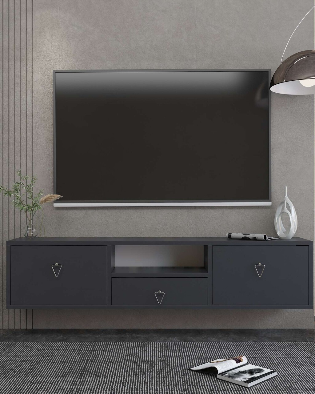 Comoda TV, Hanah Home, 1303-DROP-1, 140x30x30 cm, PAL , Antracit / Argintiu