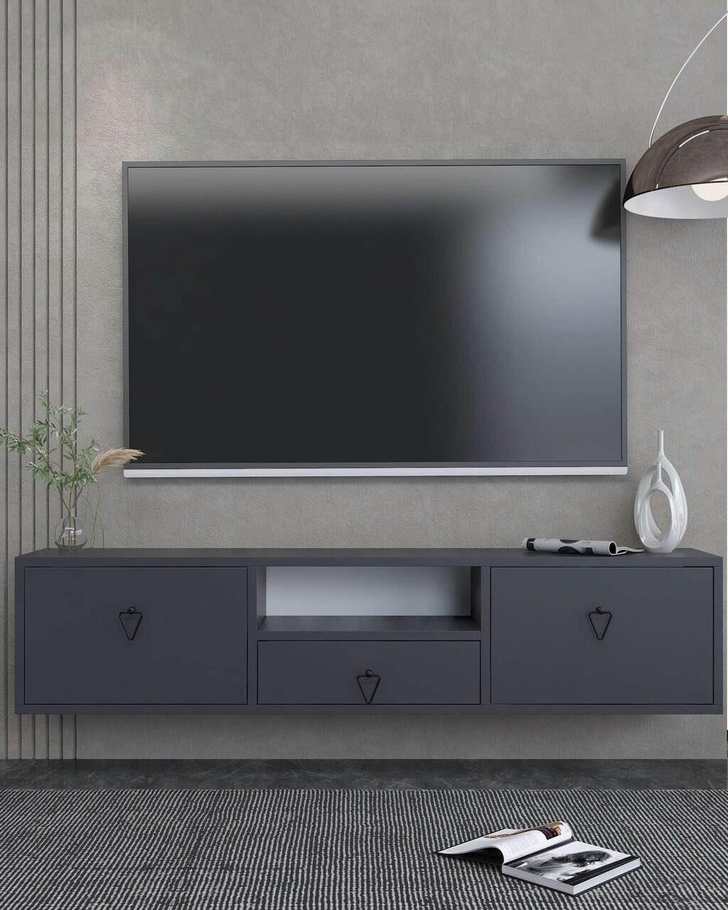 Comoda TV, Hanah Home, 1303-DROP-1, 140x30x30 cm, PAL , Antracit / Negru