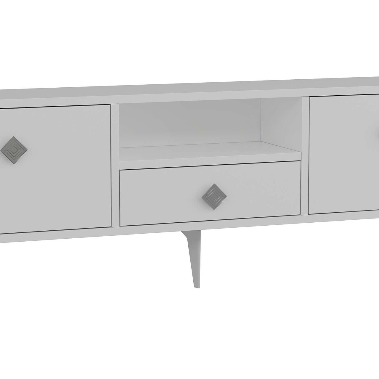 Comoda TV, Hanah Home, 1304-DROP-1, 140x49x30 cm, PAL , Alb / Argintiu