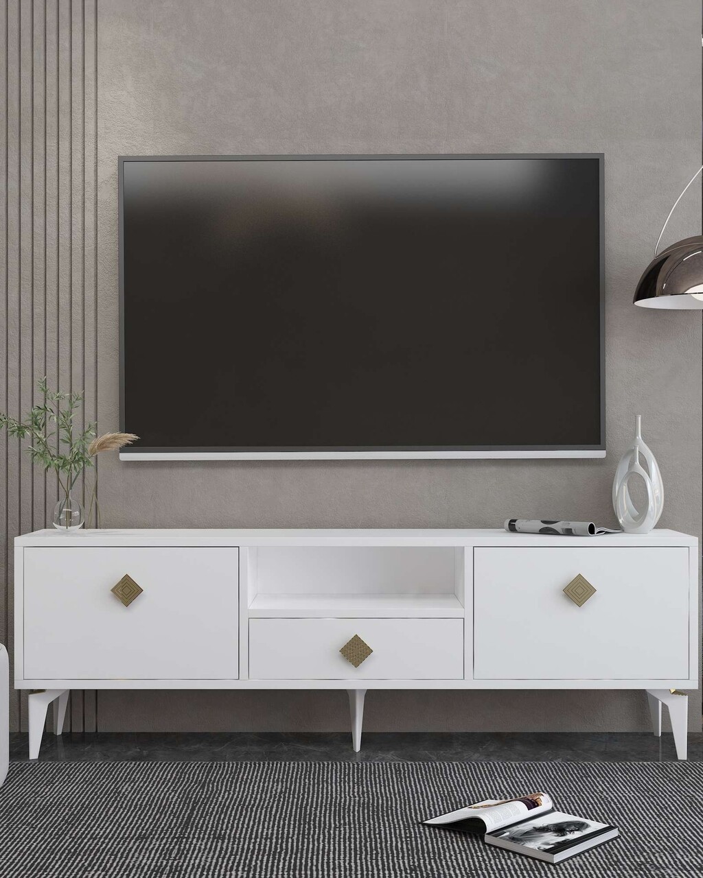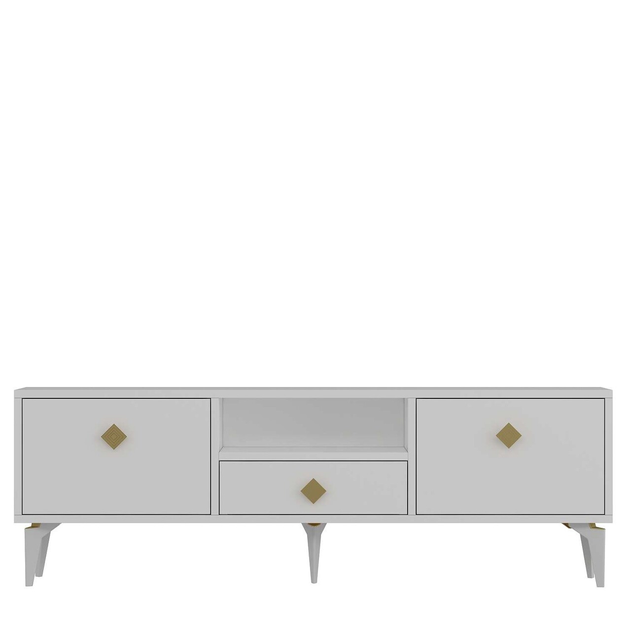 Comoda TV, Hanah Home, 1304-DROP-1, 140x49x30 cm, PAL , Alb/Auriu