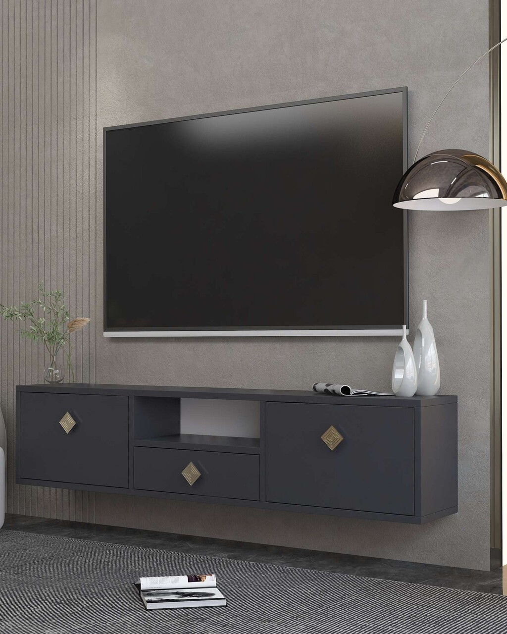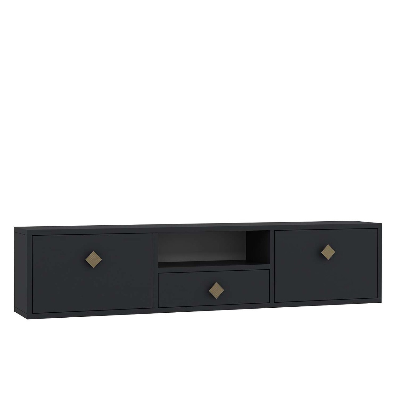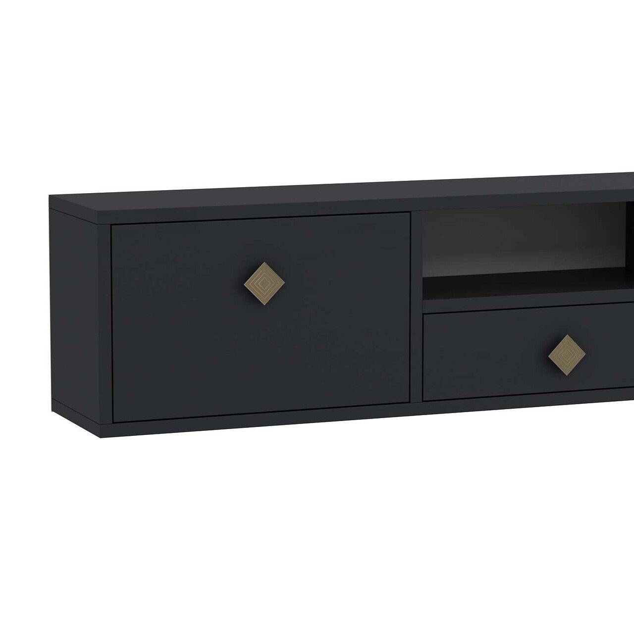 Comoda TV, Hanah Home, 1305-DROP-1, 140x30x30 cm, PAL , Antracit / Aur